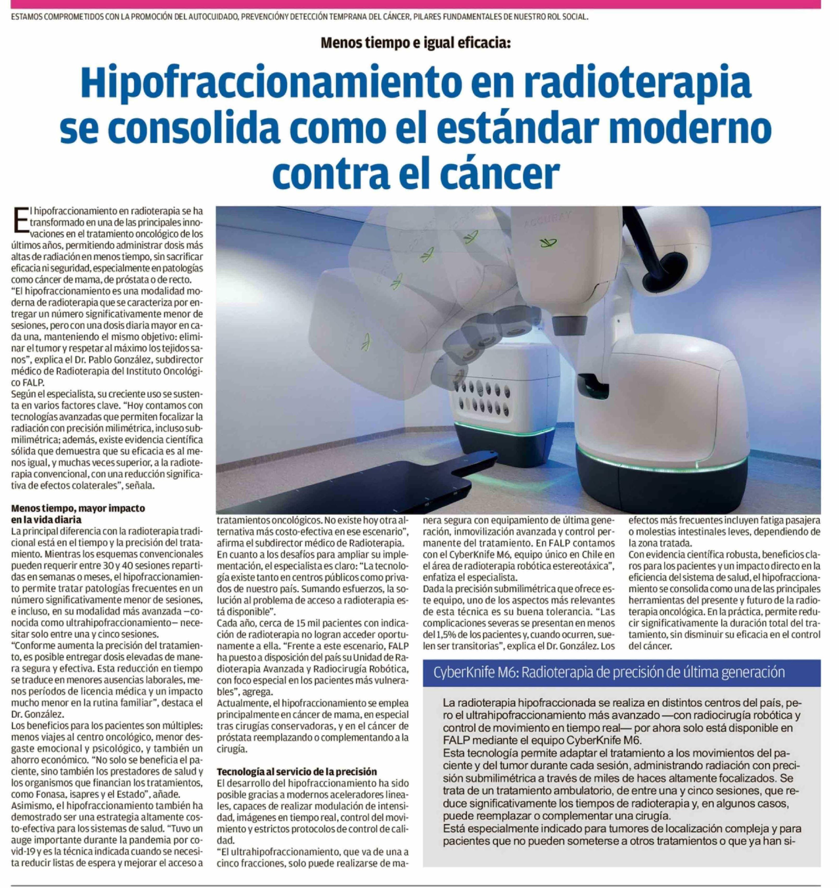 Hipofraccionamiento en radioterapia se consolida como el estándar moderno contra el cáncer 15-02-2026 Diario Austral Región de Los Ríos |