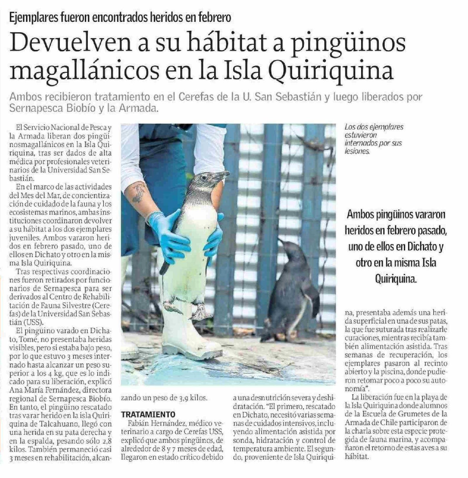 Devuelven a su hábitat a pingúinos magallánicos en la Isla Quiriquina 20-05-2025 El Sur |