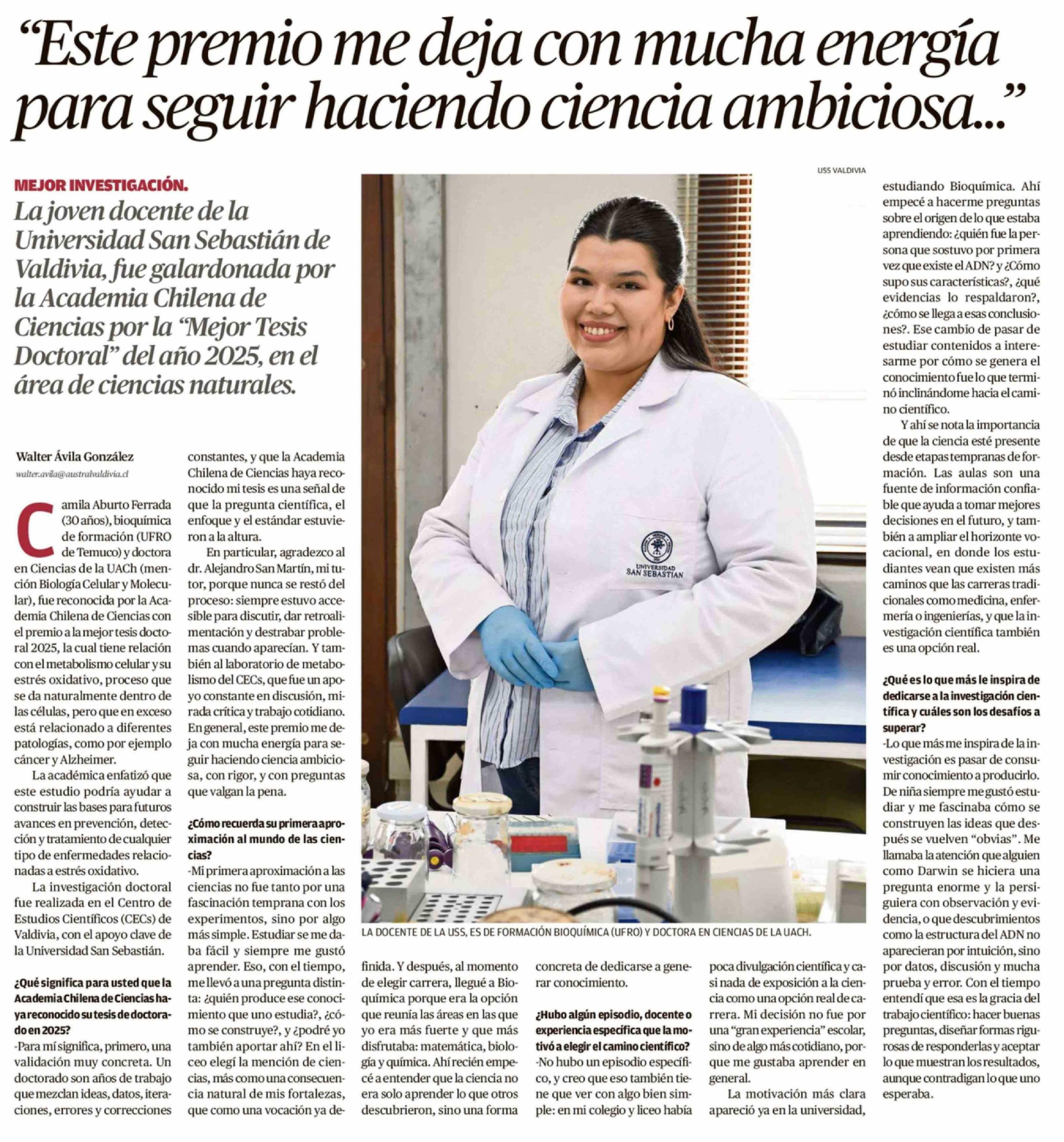Título: "Este premio me deja con mucha energía para seguir haciendo ciencia ambiciosa ... "