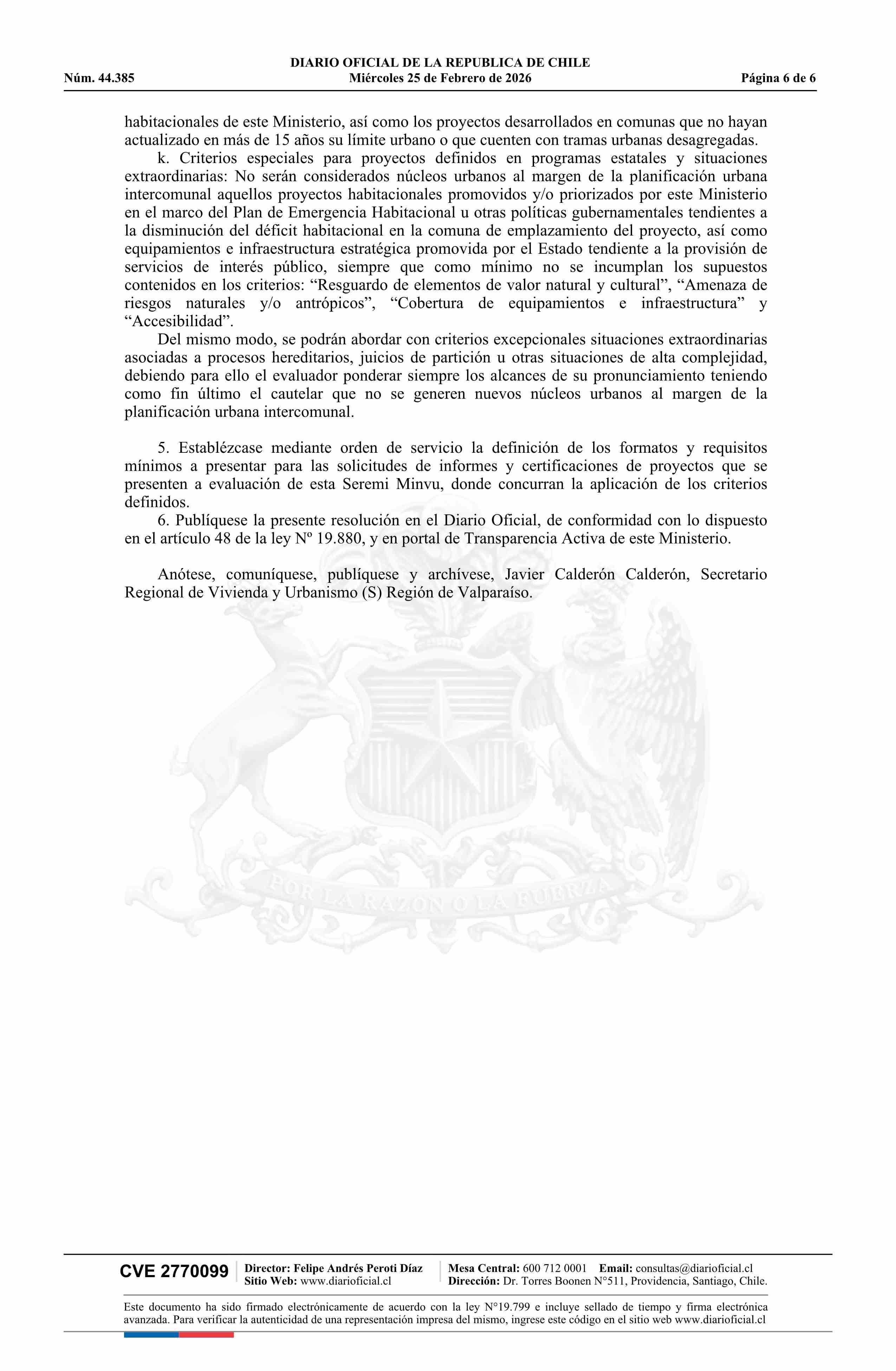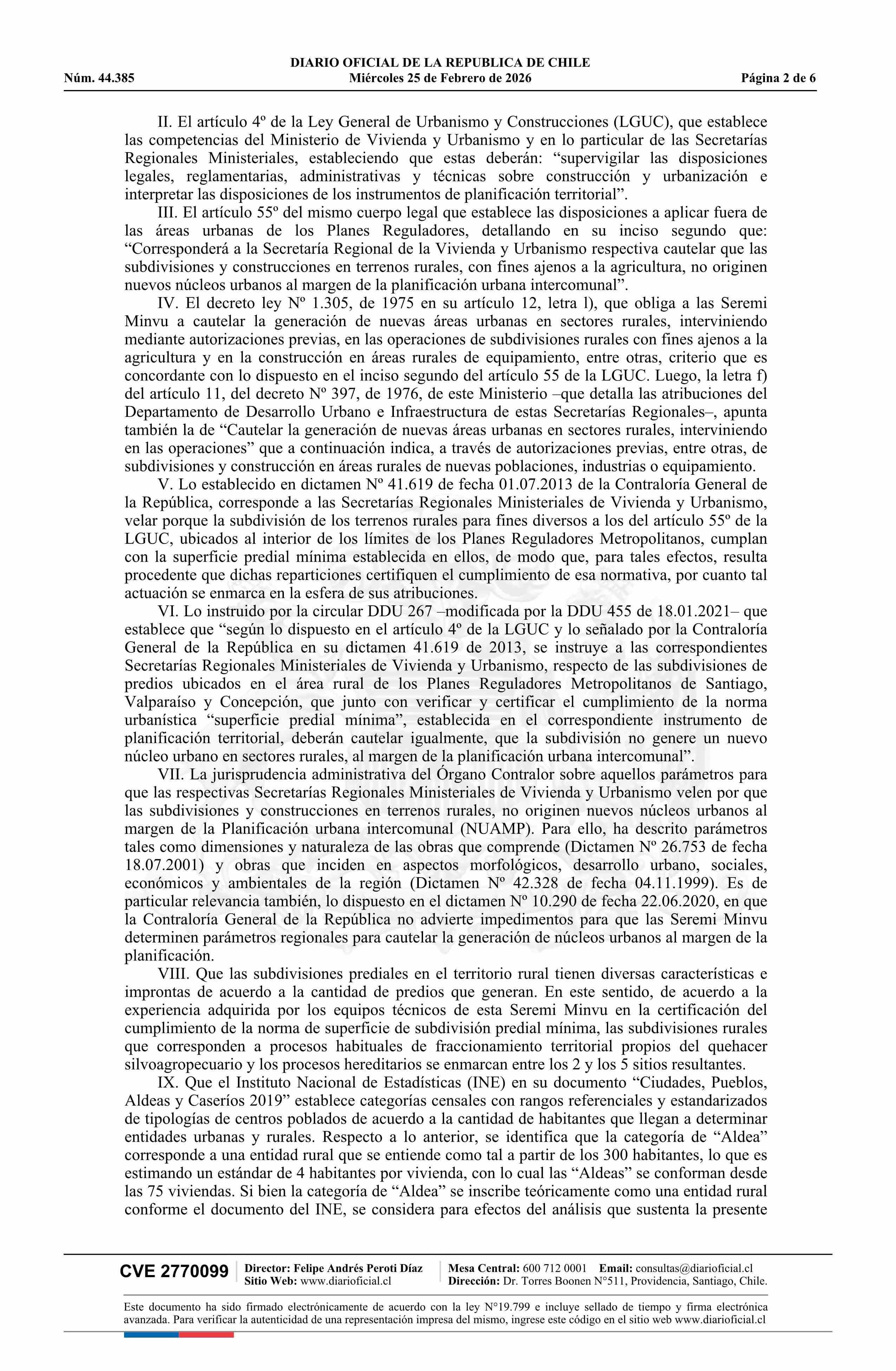 | Título: | Extracto de resolución exenta número 84, de 2026.- Actualiza criterios regionales para cautelar que las subdivisiones y construcciones en terrenos rurales con fines ajenos a la agricultura no originen nuevos núcleos urbanos al margen de la planificación urbana intercomunal, conforme lo dispuesto en |