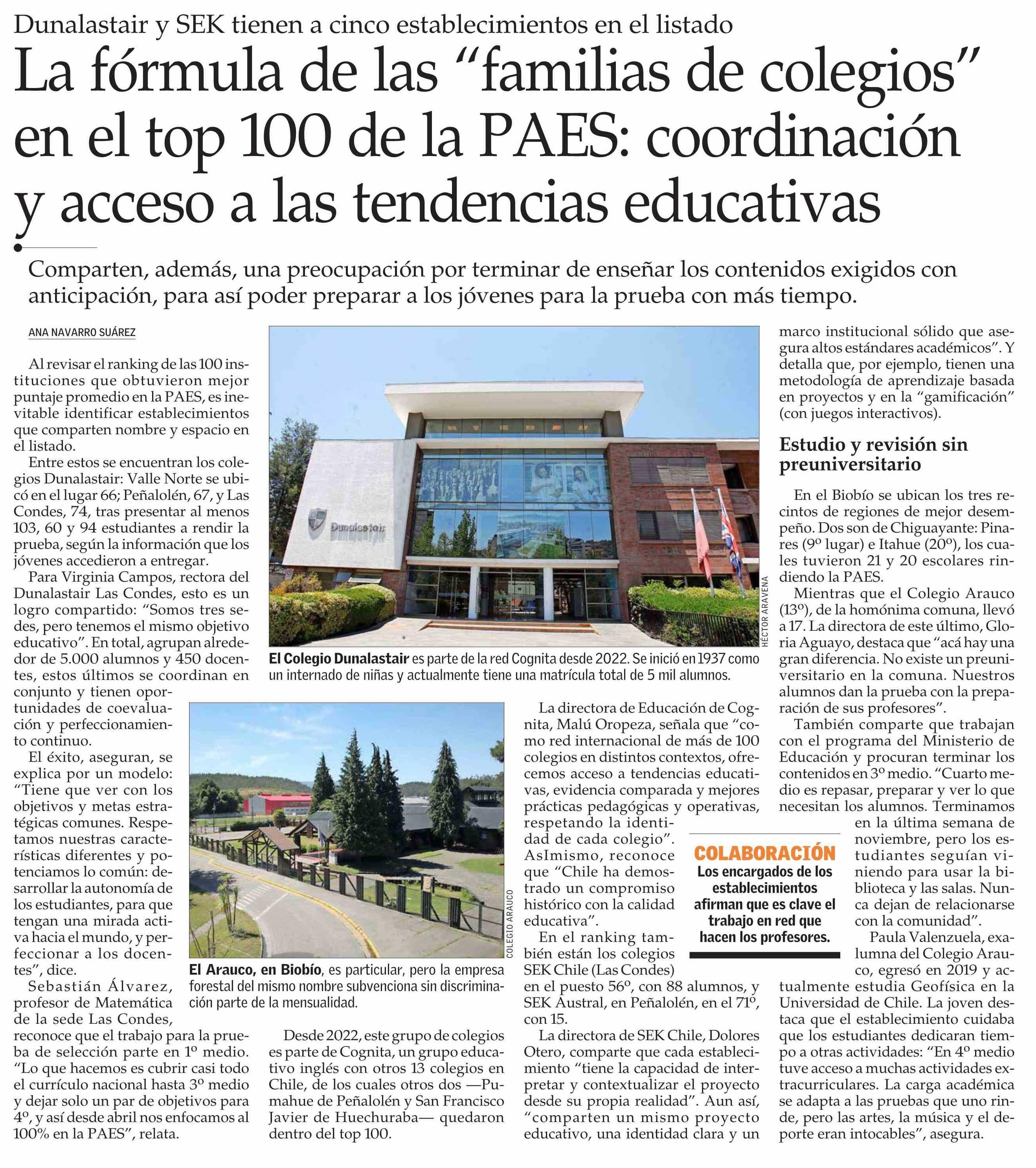 La fórmula de las “familias de colegios” en el top 100 de la PAES: coordinación y acceso a las tendencias educativas