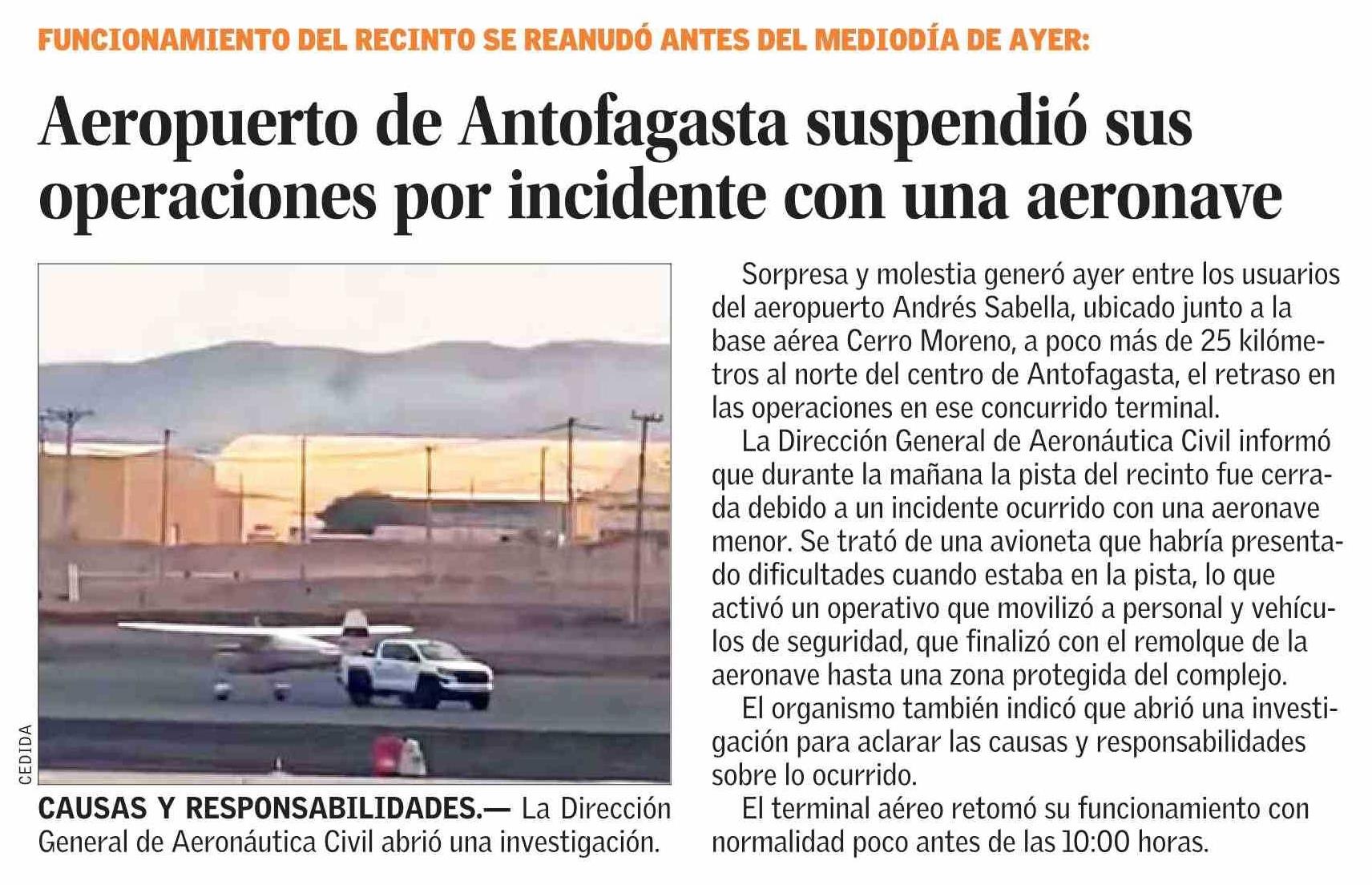 Título: Aeropuerto de Antofagasta suspendió sus operaciones por incidente con una aeronave
