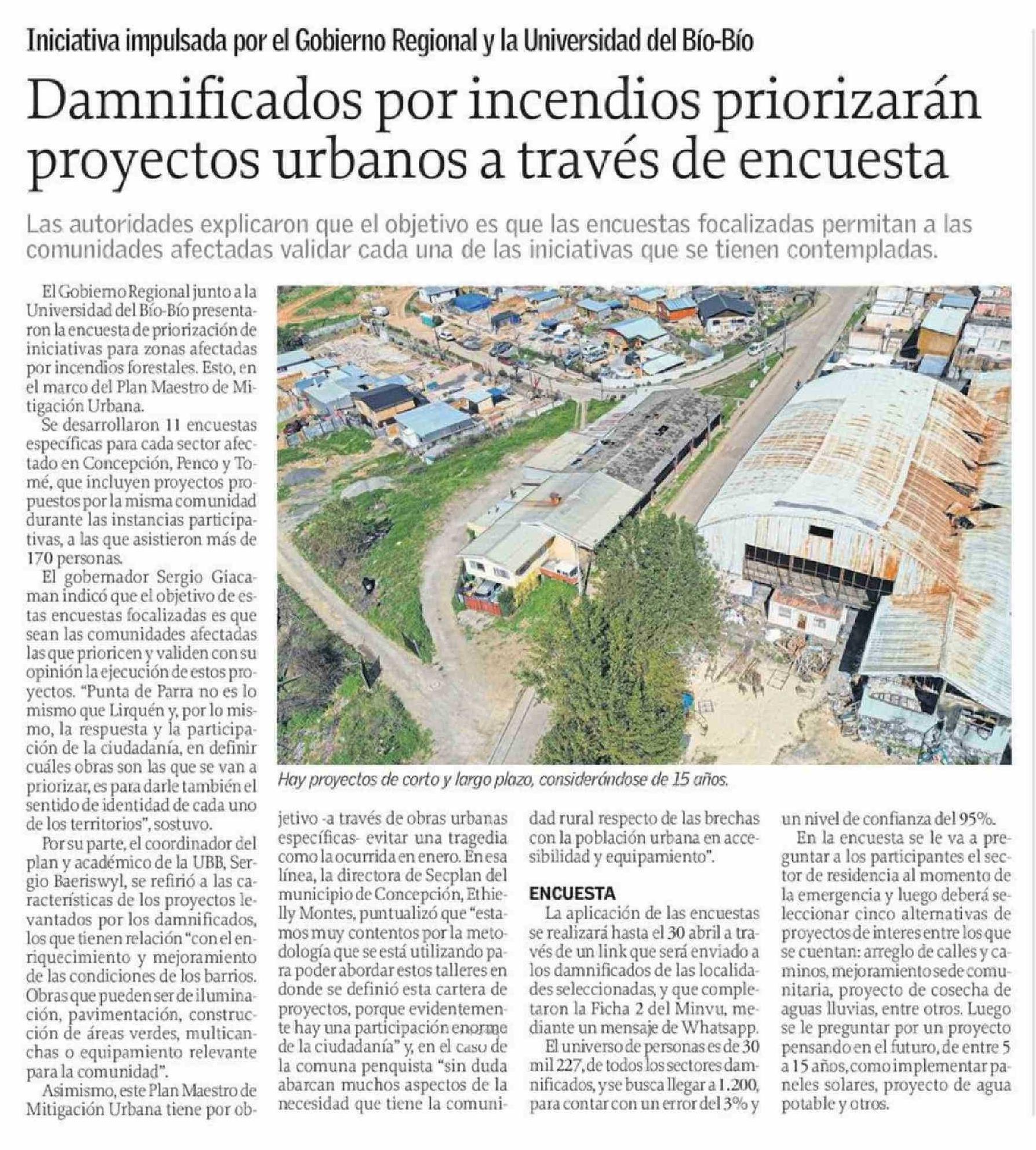 Damnificados por incendios priorizarán proyectos urbanos a través de encuesta 21-04-2026 El Sur |