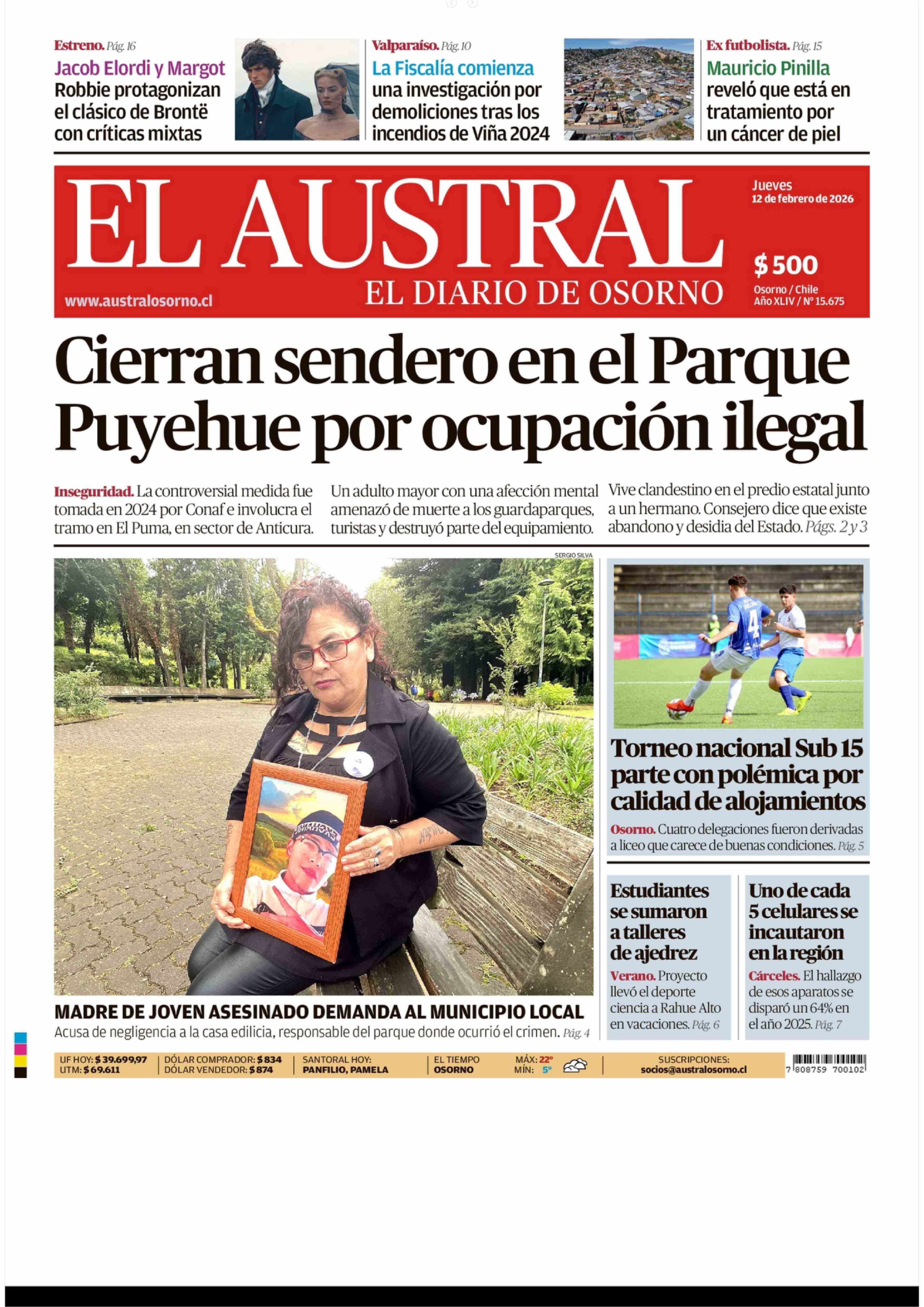 PORTADA EL AUSTRAL DE OSORNO CHILE 12-02-2026 El Austral de Osorno |