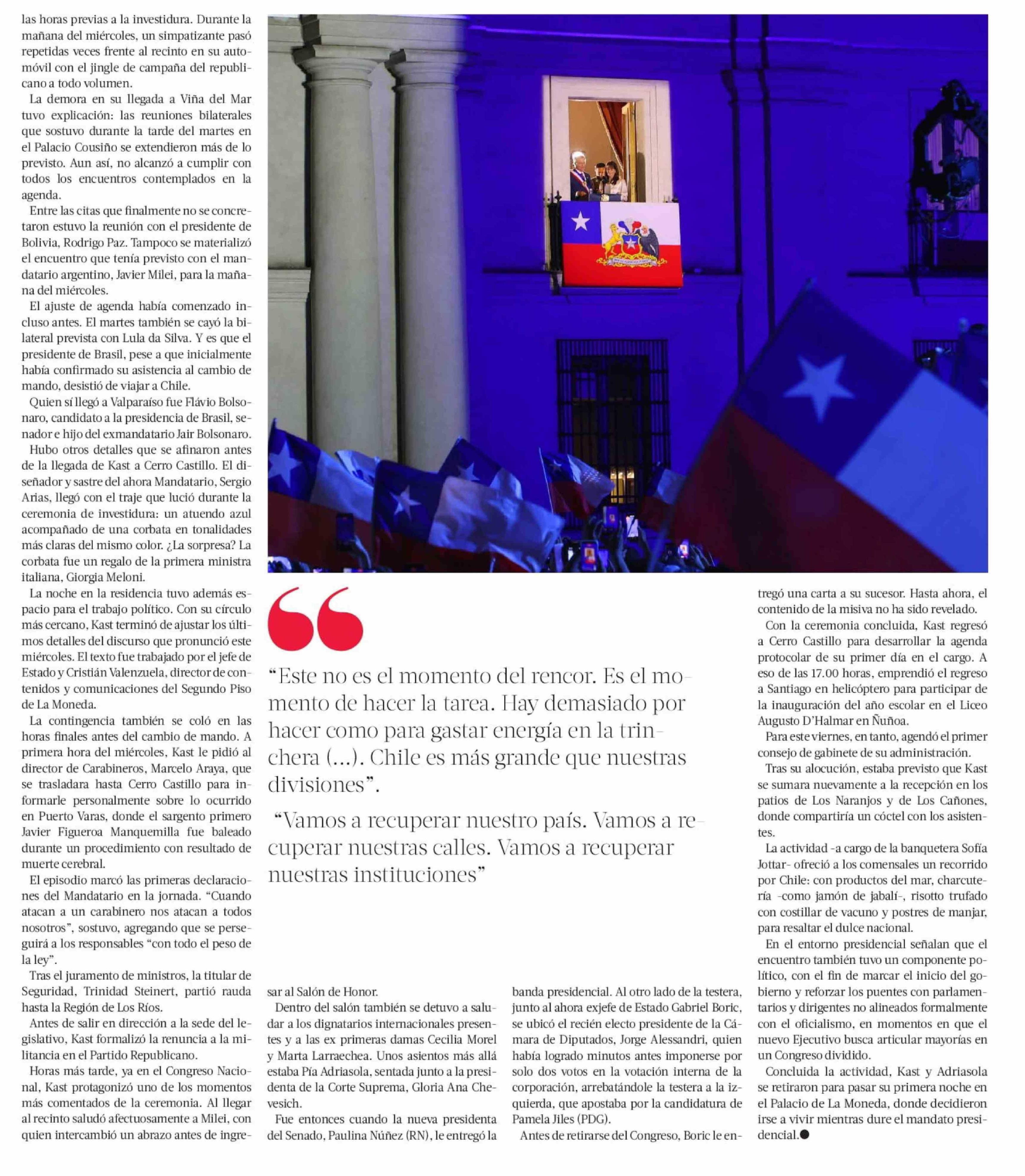 Título: Kast asume la Presidencia de la República: llama a la unidad y se compromete a “recuperar” el país