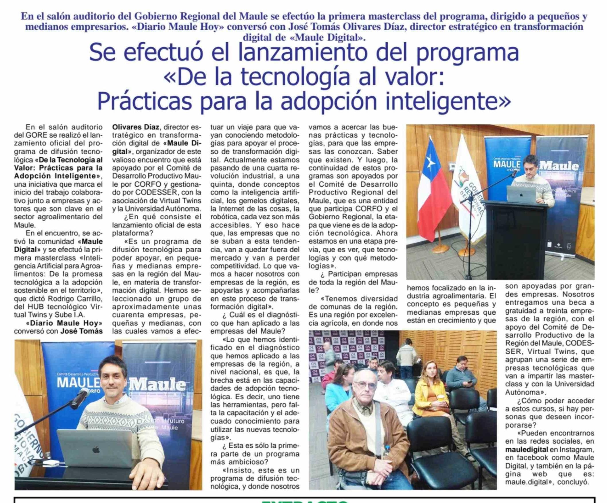 Se efectuó el lanzamiento del programa «De la tecnología al valor: Prácticas para la adopción inteligente» 29-03-2026 Maule Hoy |