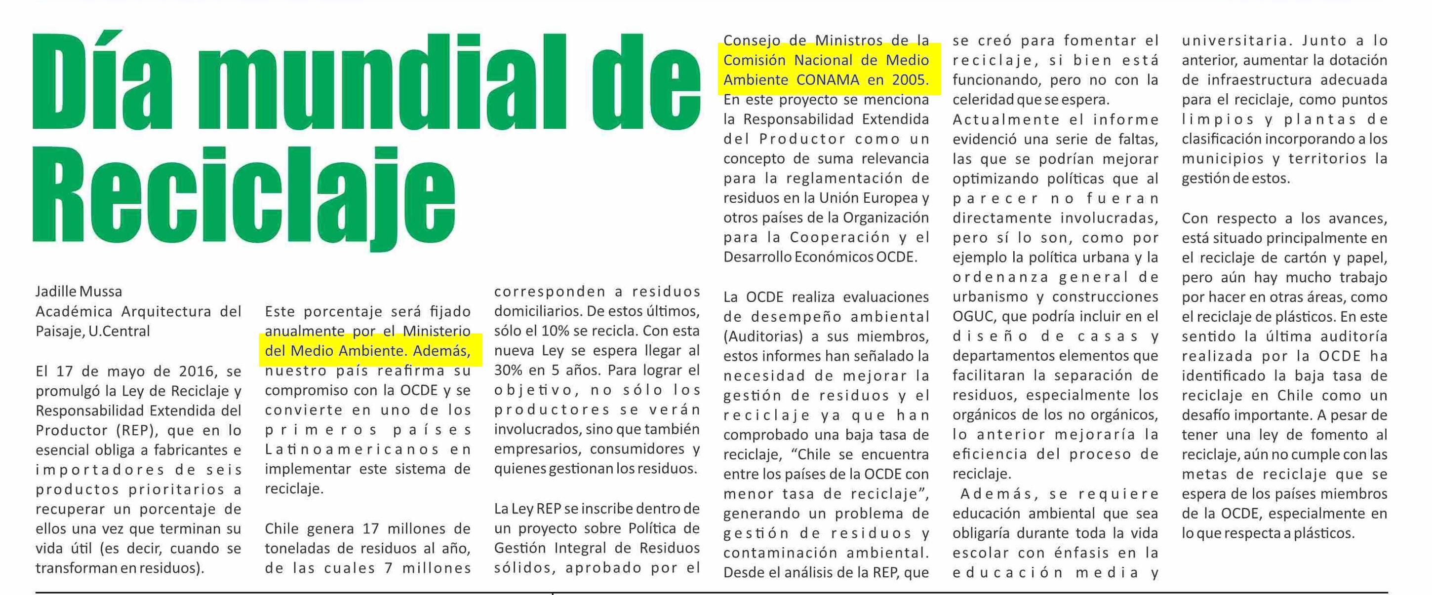 | Título: | COLUMNAS DE OPINIÓN: Día mundial de Reciclaje |