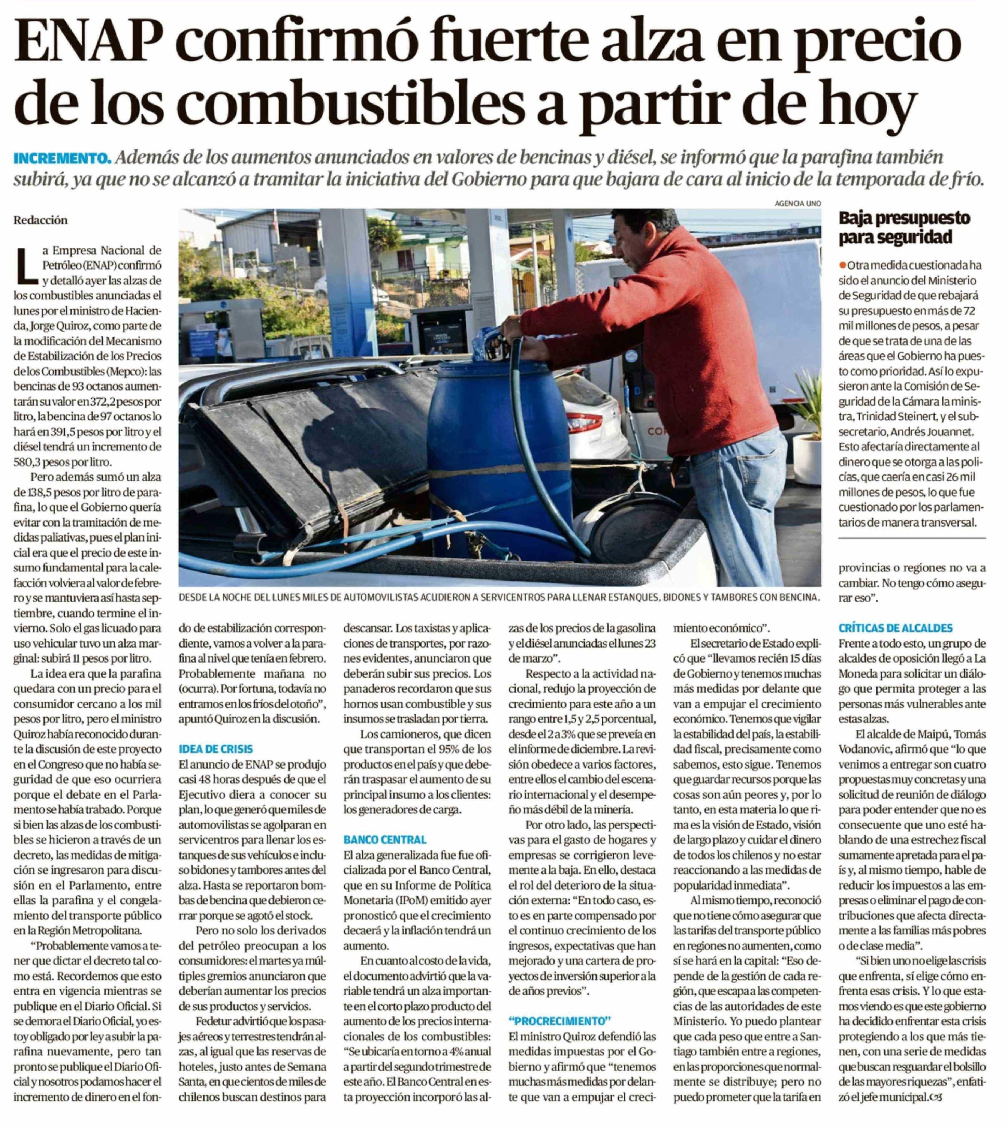 | Título: | ENAP confirmó fuerte alza en precio de los combustibles a partir de hoy |