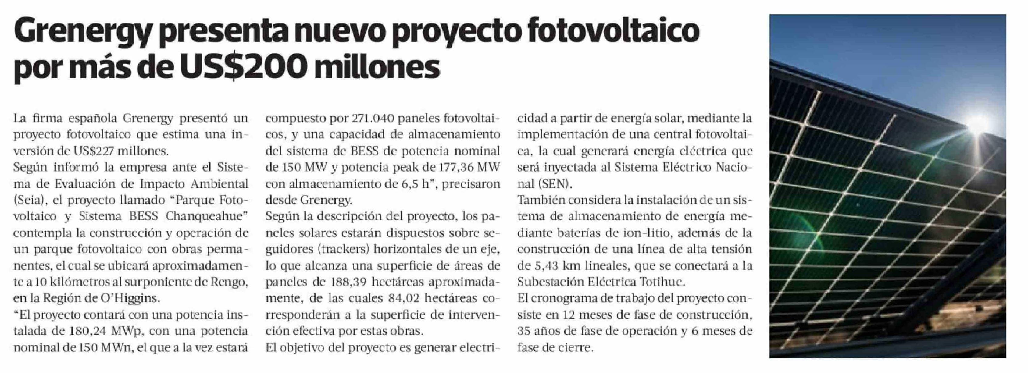 | Título: | Grenergy presenta nuevo proyecto fotovoltaico por más de US$200 millones |