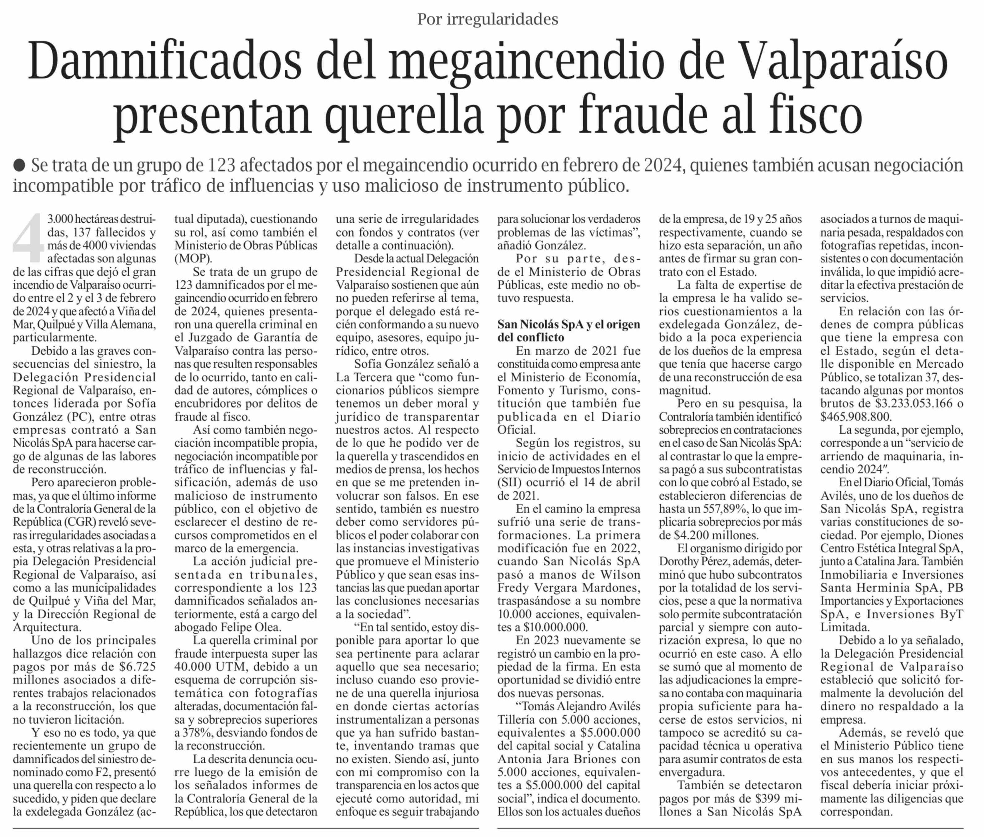| Título: | Damnificados del megaincendio de Valparaíso presentan querella por fraude al fisco |