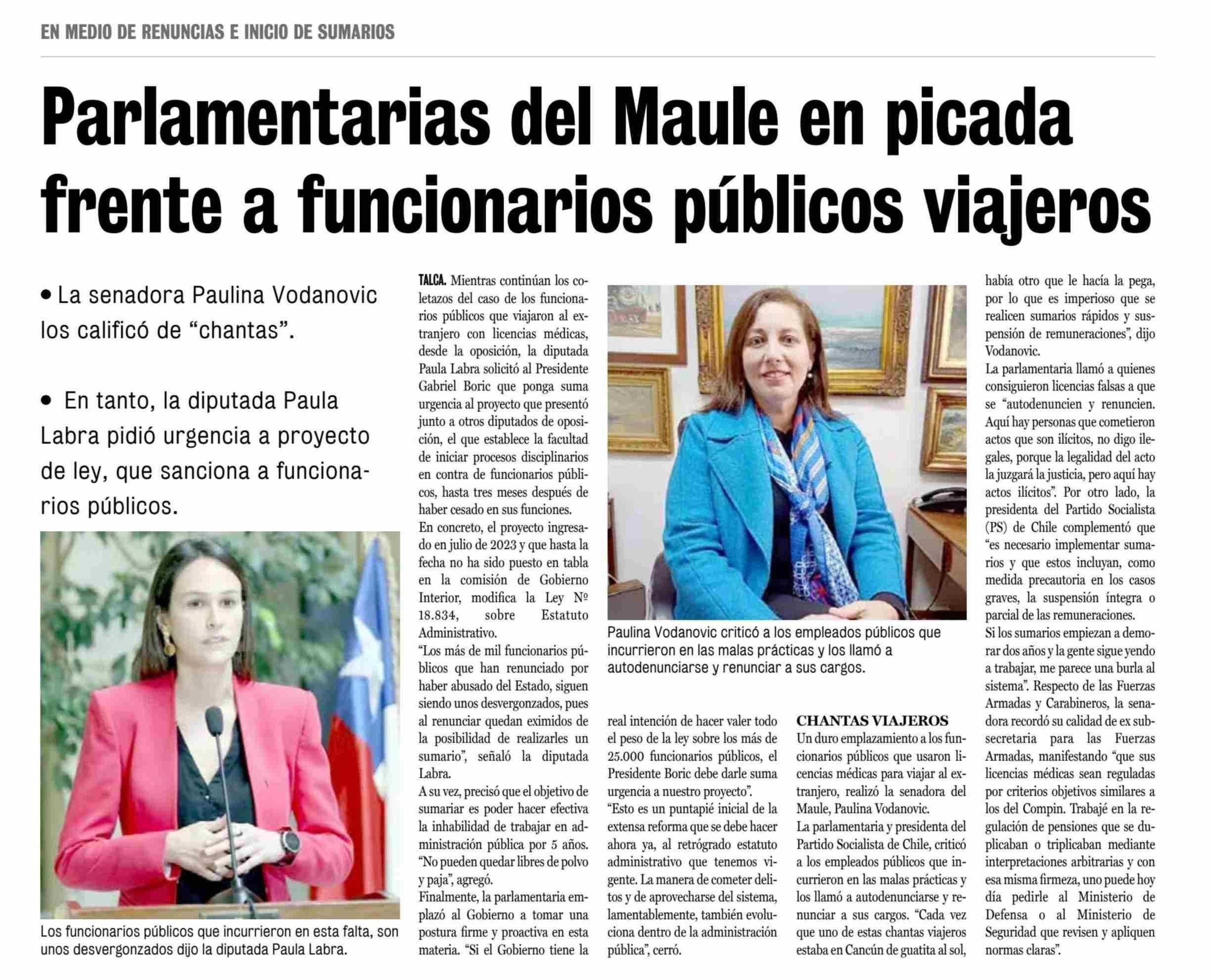 | Título: | Parlamentarias del Maule en picada frente a funcionarios públicos viajeros |