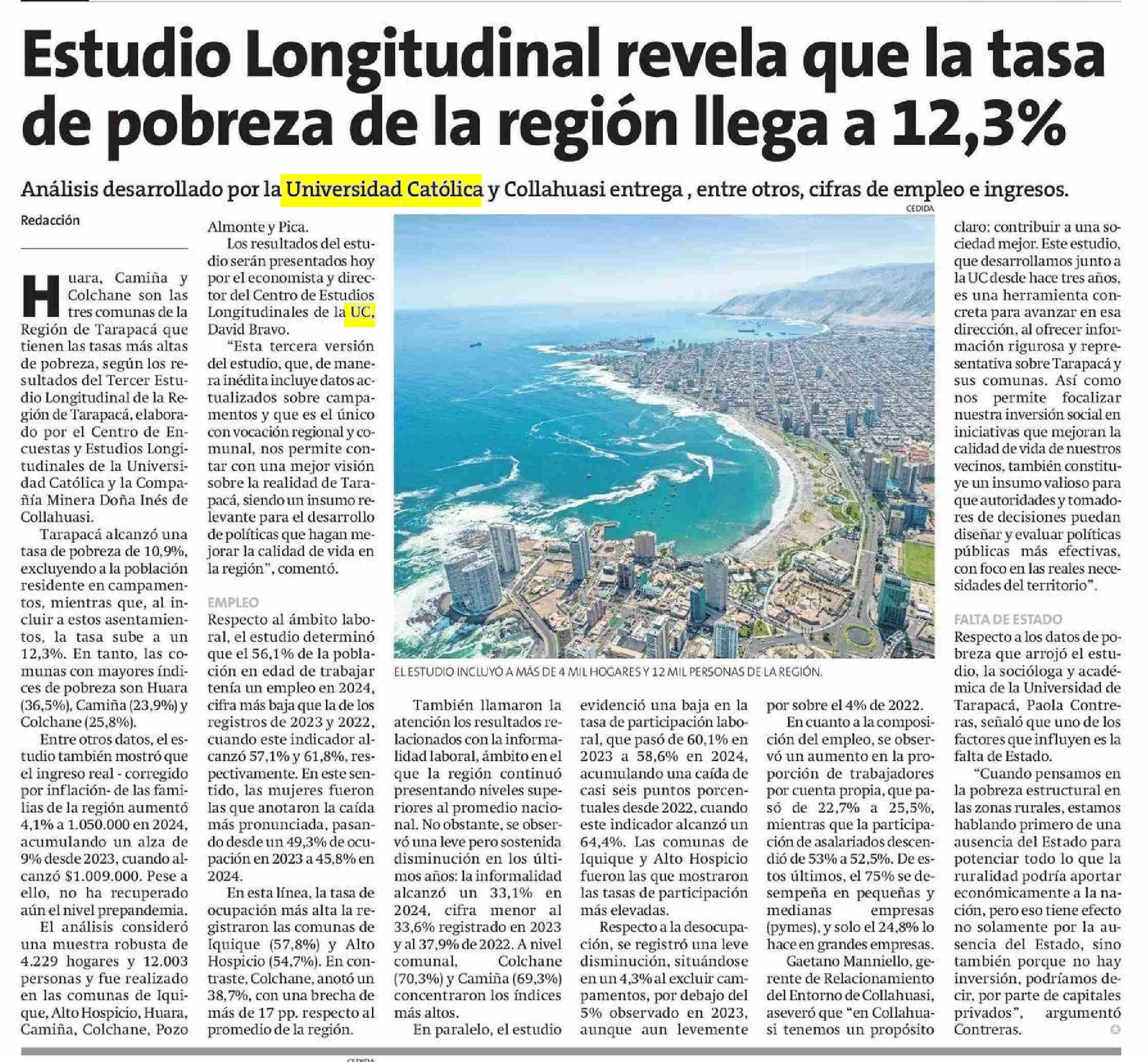 Estudio Longitudinal revela que la tasa de pobreza de la región llega a 12,3% 13-06-2025 La Estrella de Iquique |