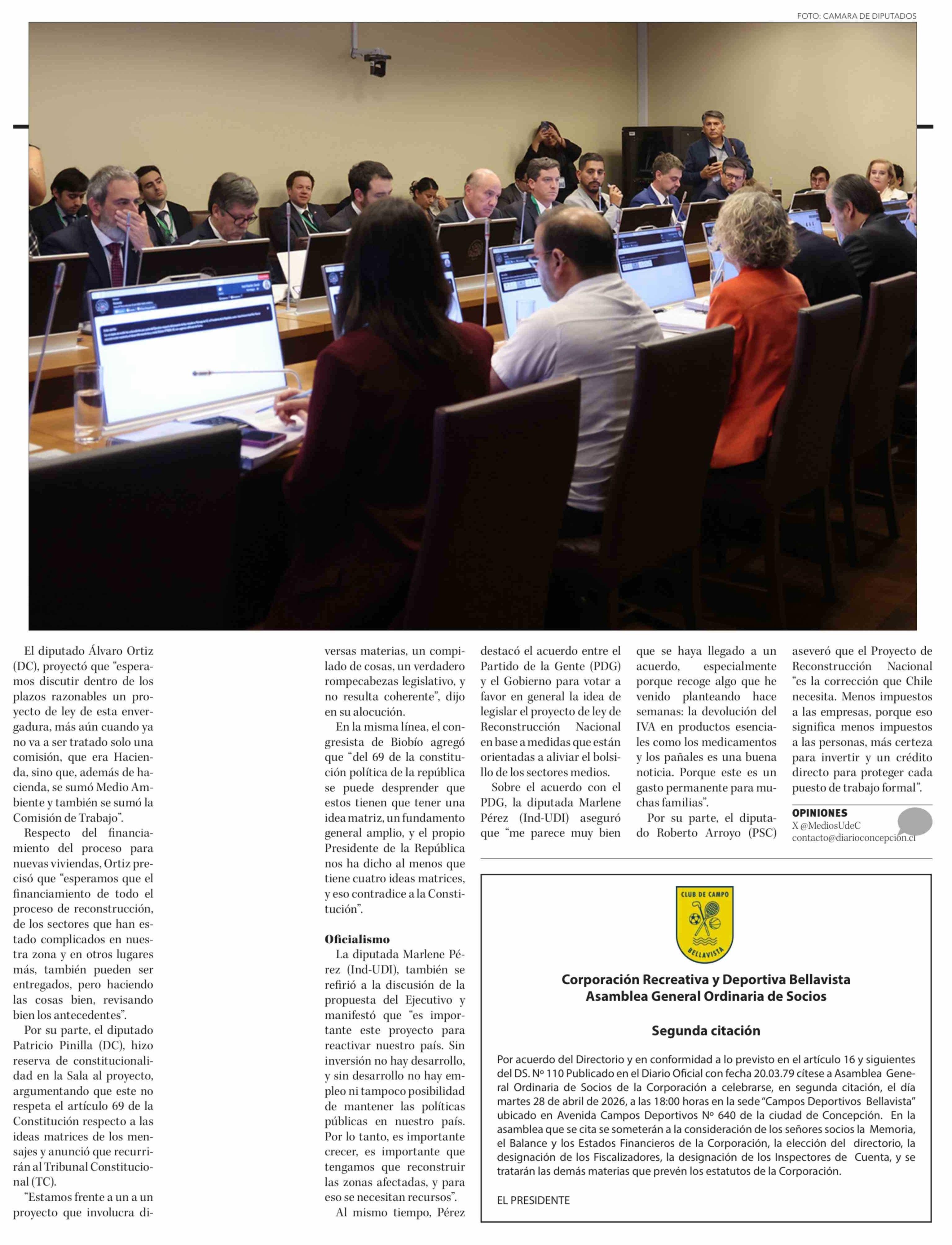 Título: Reconstrucción: plazos de tramitación en el Congreso tensiona debate sobre obtención de recursos