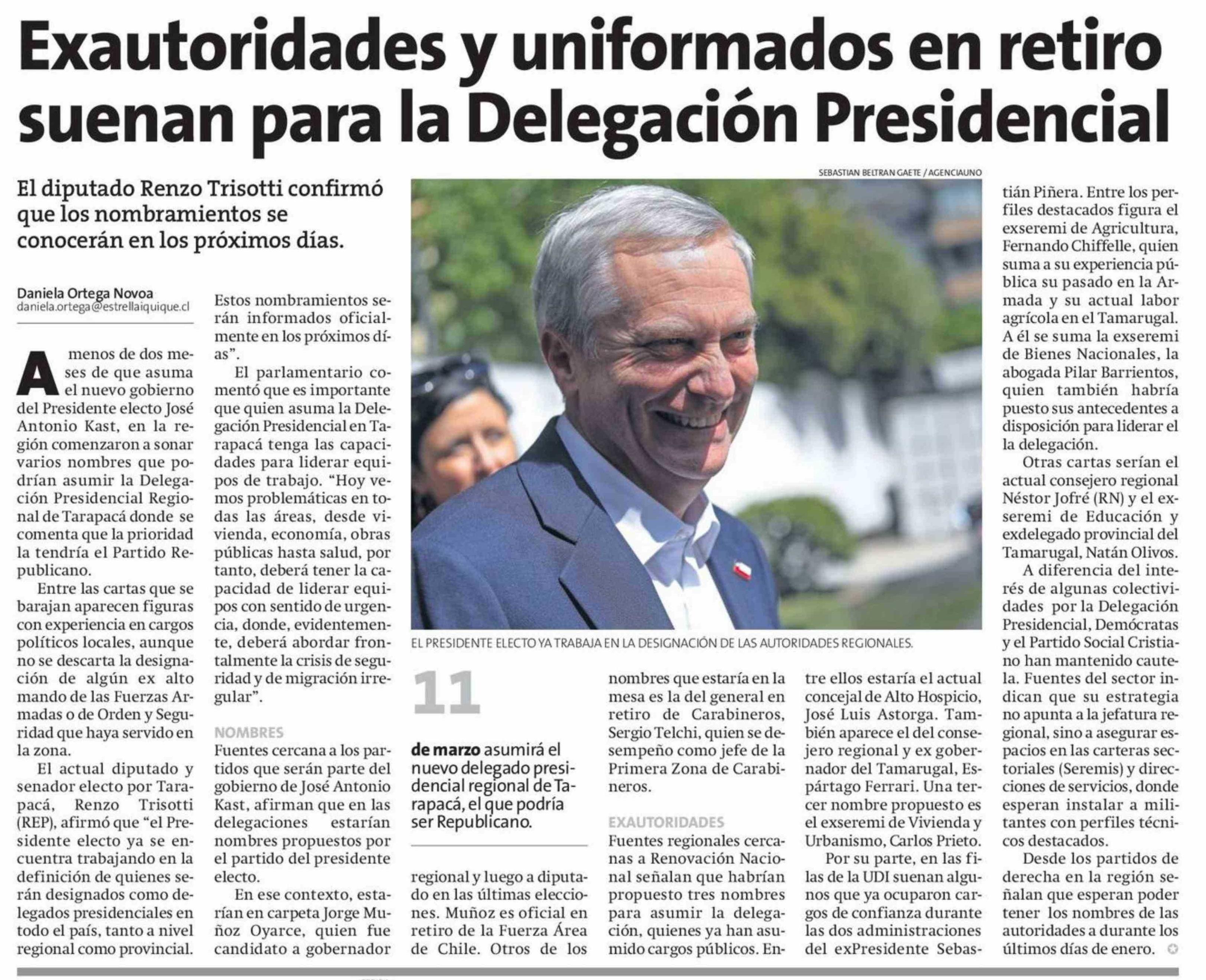Exautoridades y uniformados en retiro suenan para la Delegación Presidencial 22-01-2026 La Estrella de Iquique |