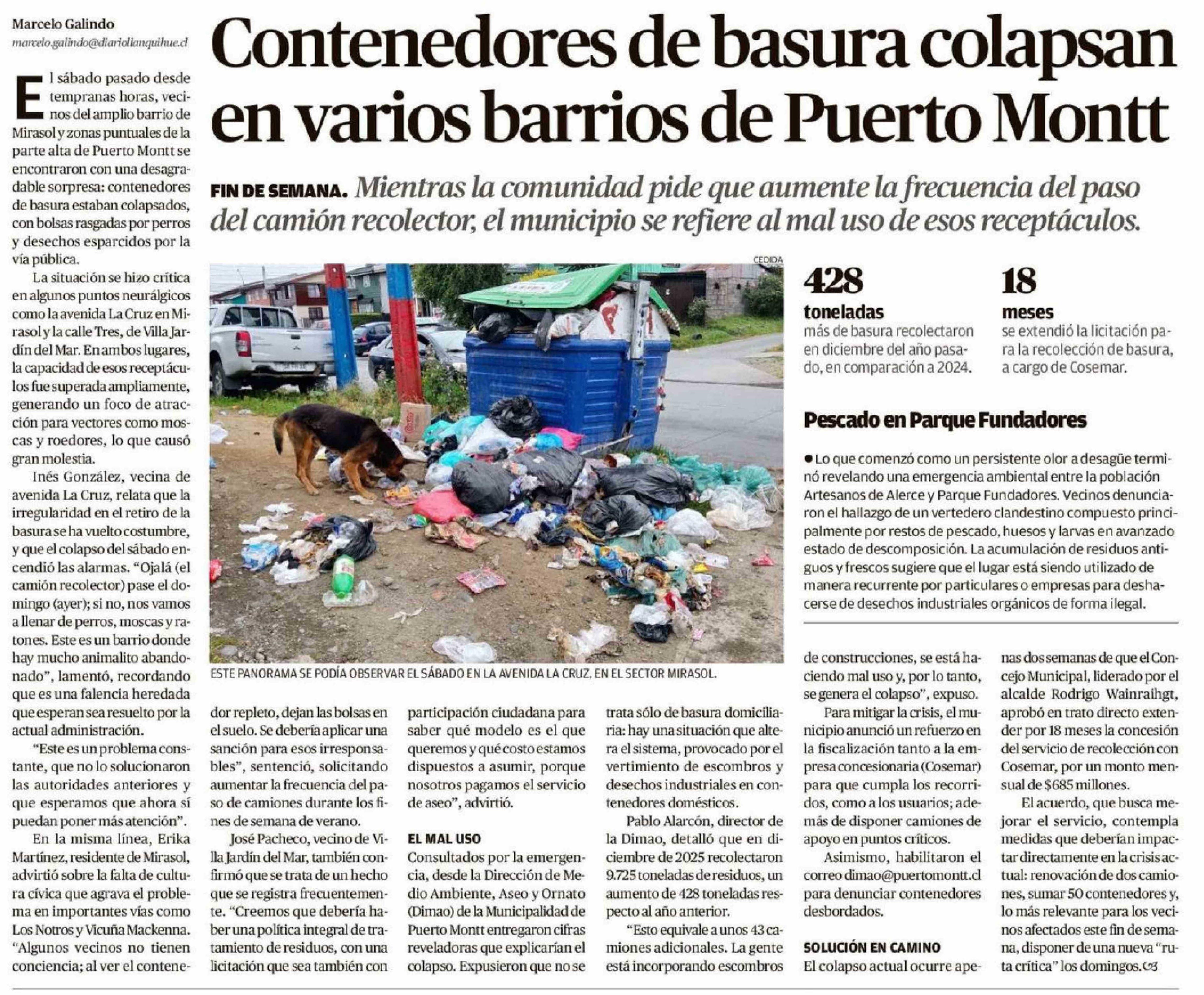 Contenedores de basura colapsan en varios barrios de Puerto Montt 02-02-2026 El Llanquihue |