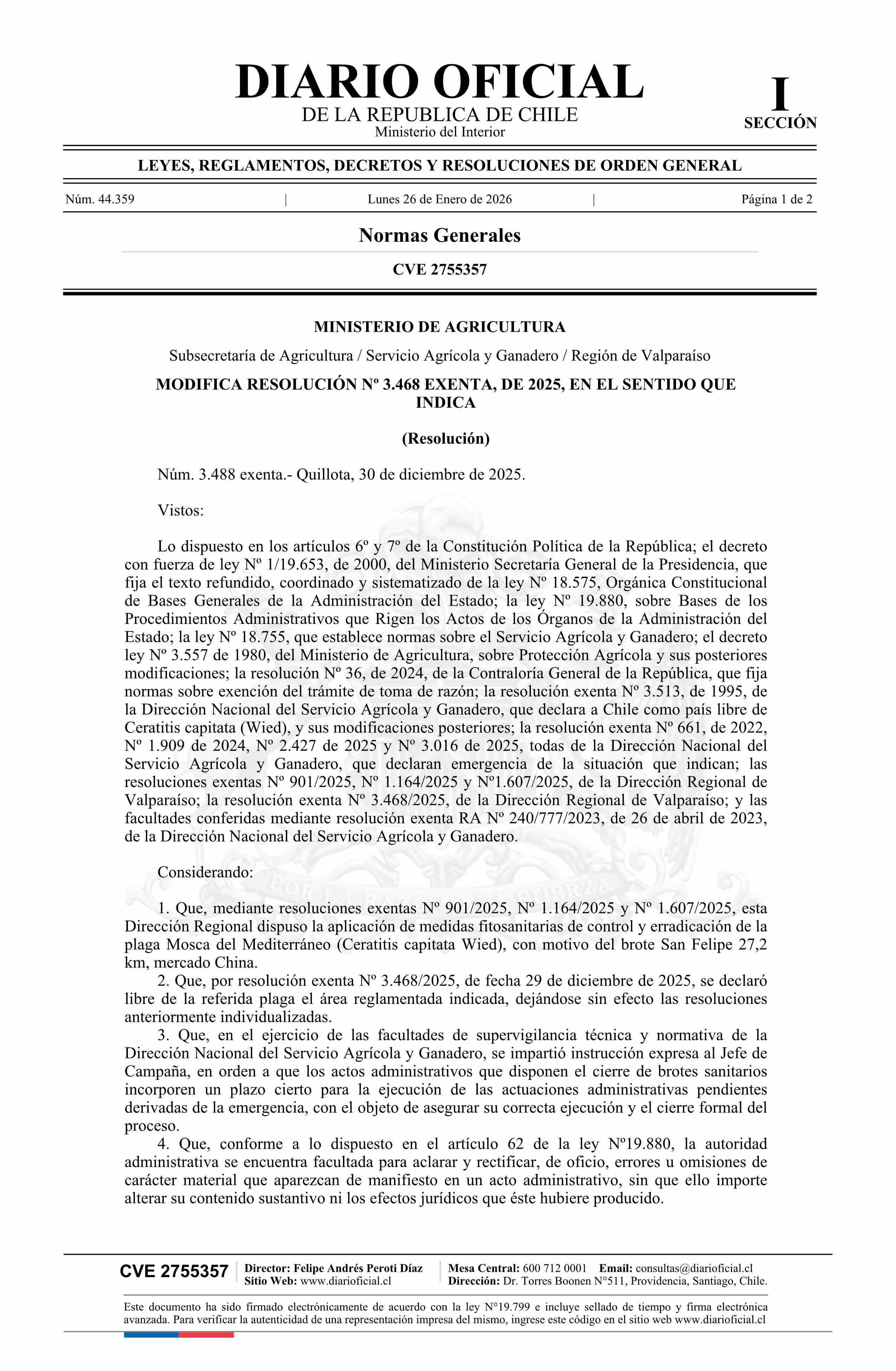 Título: Resolución exenta número 3.488, de 2025.- Modifica resolución Nº 3.468 exenta, de 2025