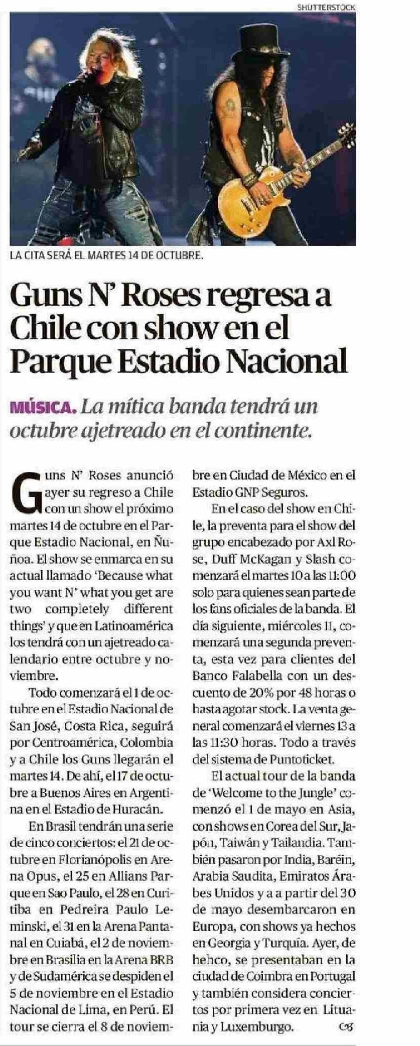 | Título: | Gtms Roses regresa a Chile con show en el Parque Estadio Nacional |