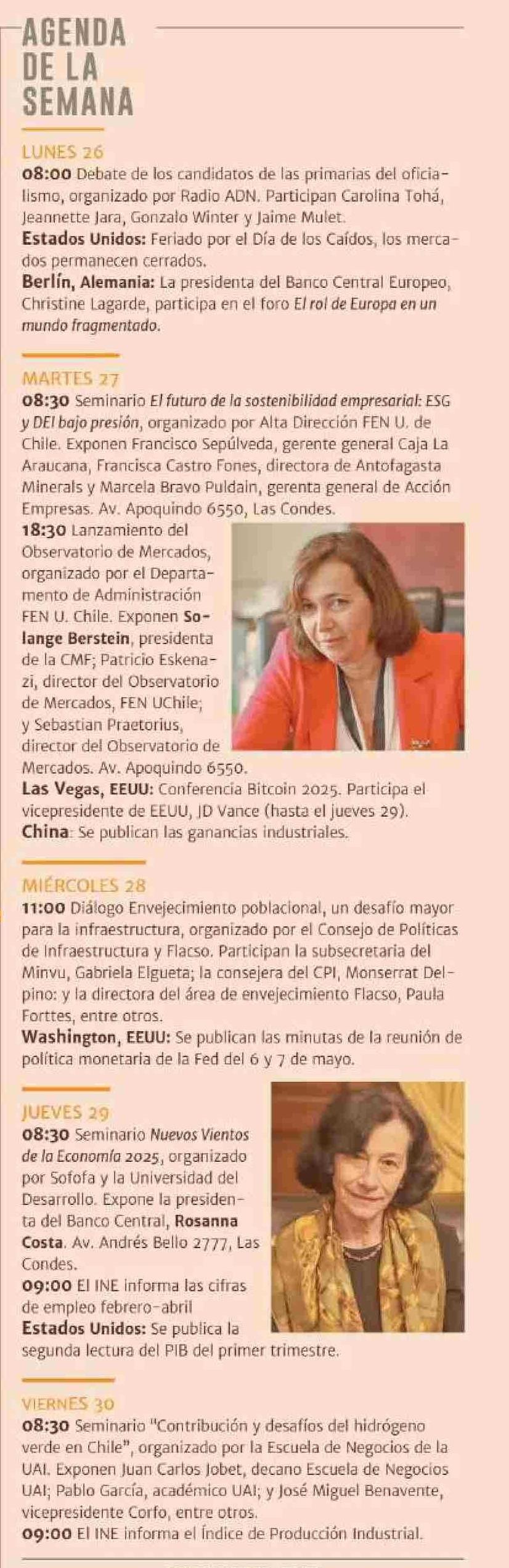 AGENDA DE LA SEMANA 26-05-2025 Diario Financiero |