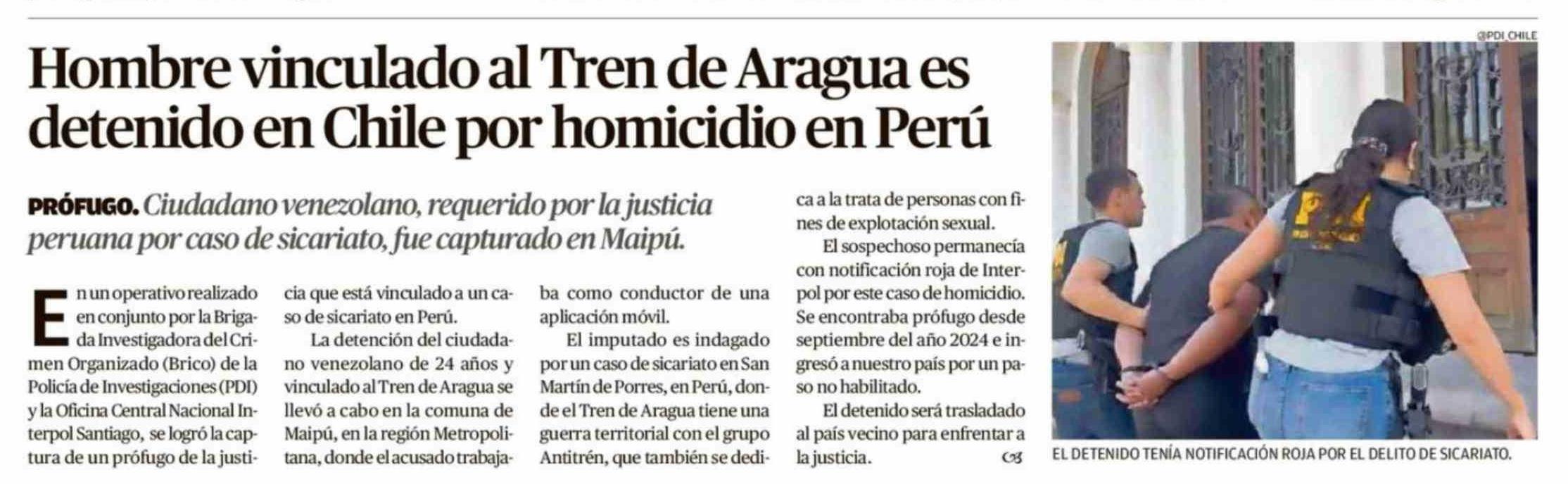 | Título: | Hombre vinculado al Tren de Aragua es detenido en Chile por homicidio en Perú |