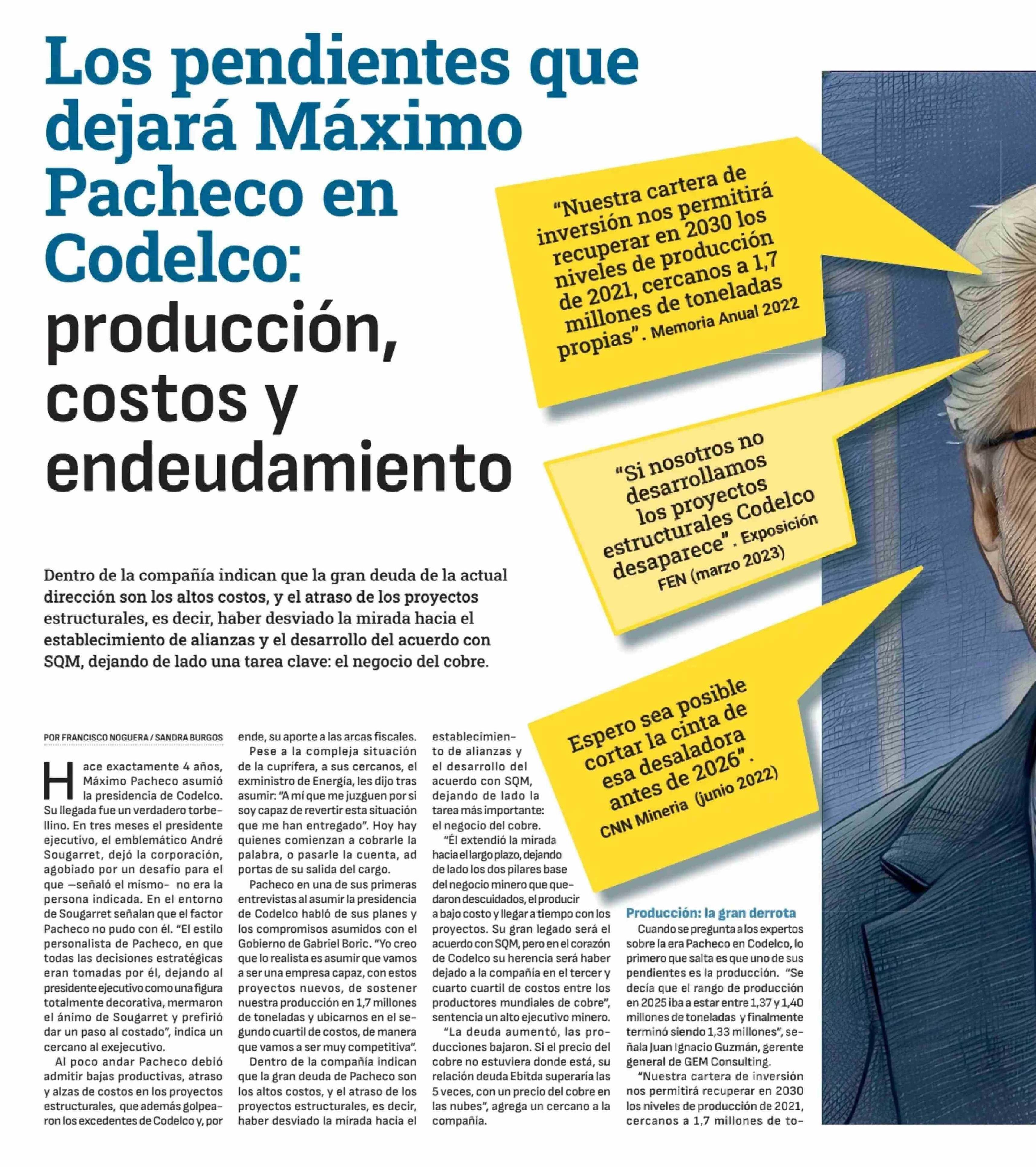 | Título: | Los pendientes que dejara Maximo Pacheco en Codelco: producción, costos y endeudamiento |