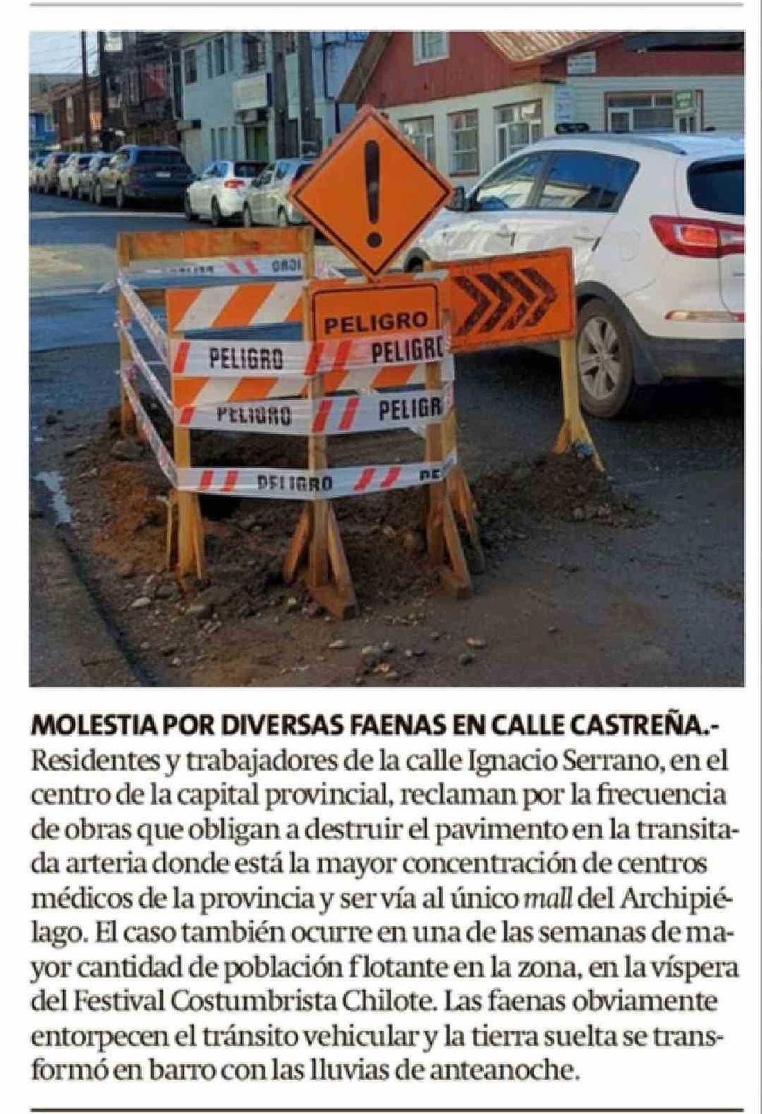 MOLESTIA POR DIVERSAS FAENAS EN CALLE CASTREÑA .Residentes y trabajadores de la calle Ignacio Serrano, en el centro de la capital provincial, reclaman por la frecuencia de obras que obligan a destruir el pavimento en la transitada arteria donde está la mayor concentración de centros médicos de la pr