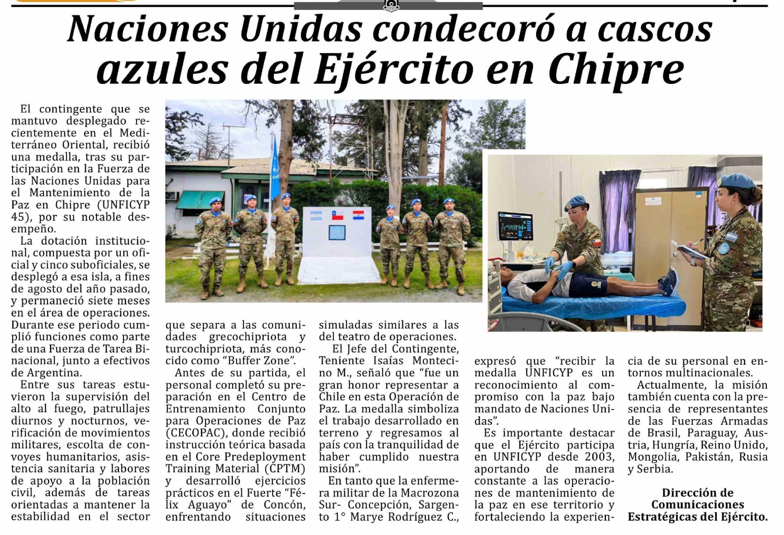 | Título: | Naciones Unidas condecoró a cascos azules del Ejército en Chipre |