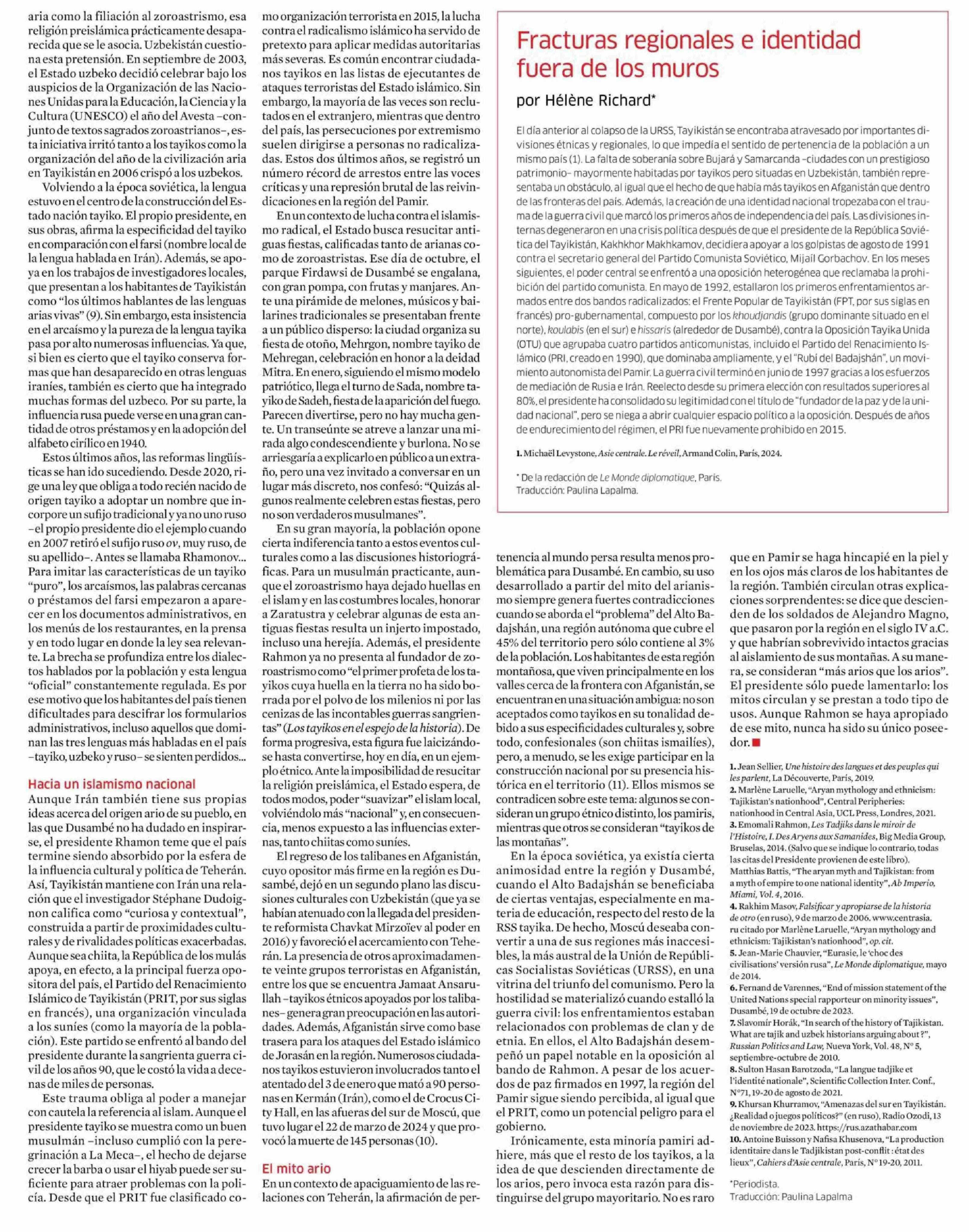 La nación tayika revisita el mito ario 02-09-2024 Le Monde Diplomatique |