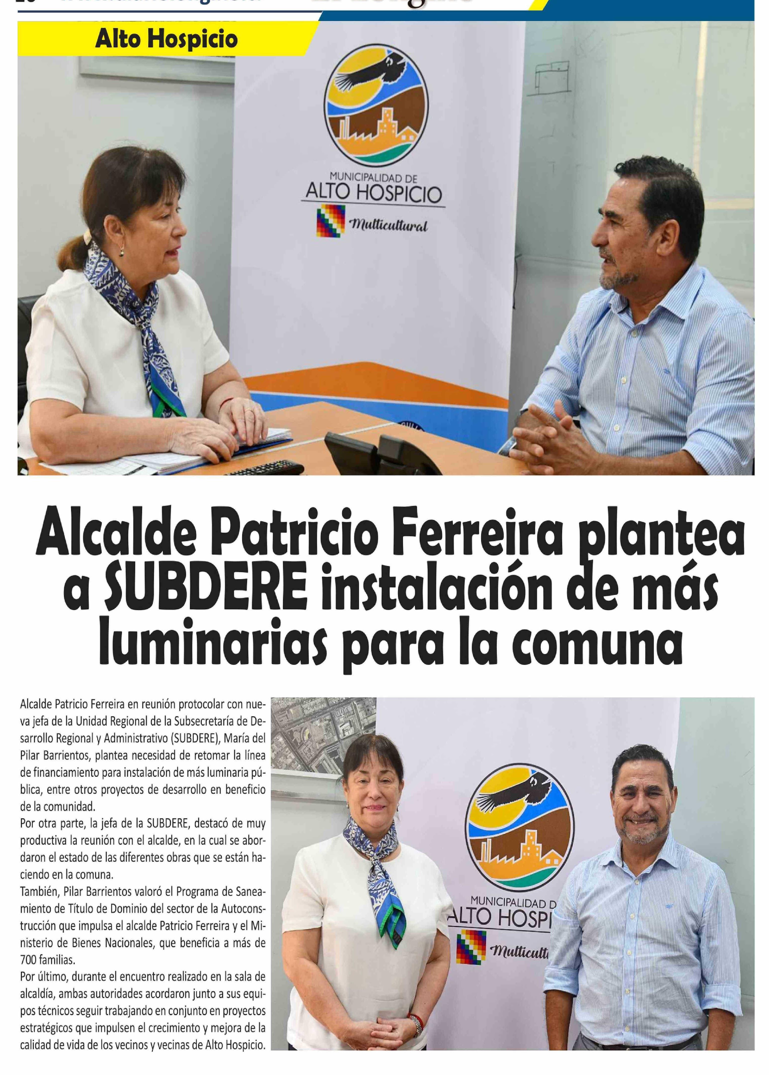 | Título: | Alcalde Patricio Ferreira plantea a SUBDERE instalación de más luminarias para la comuna |