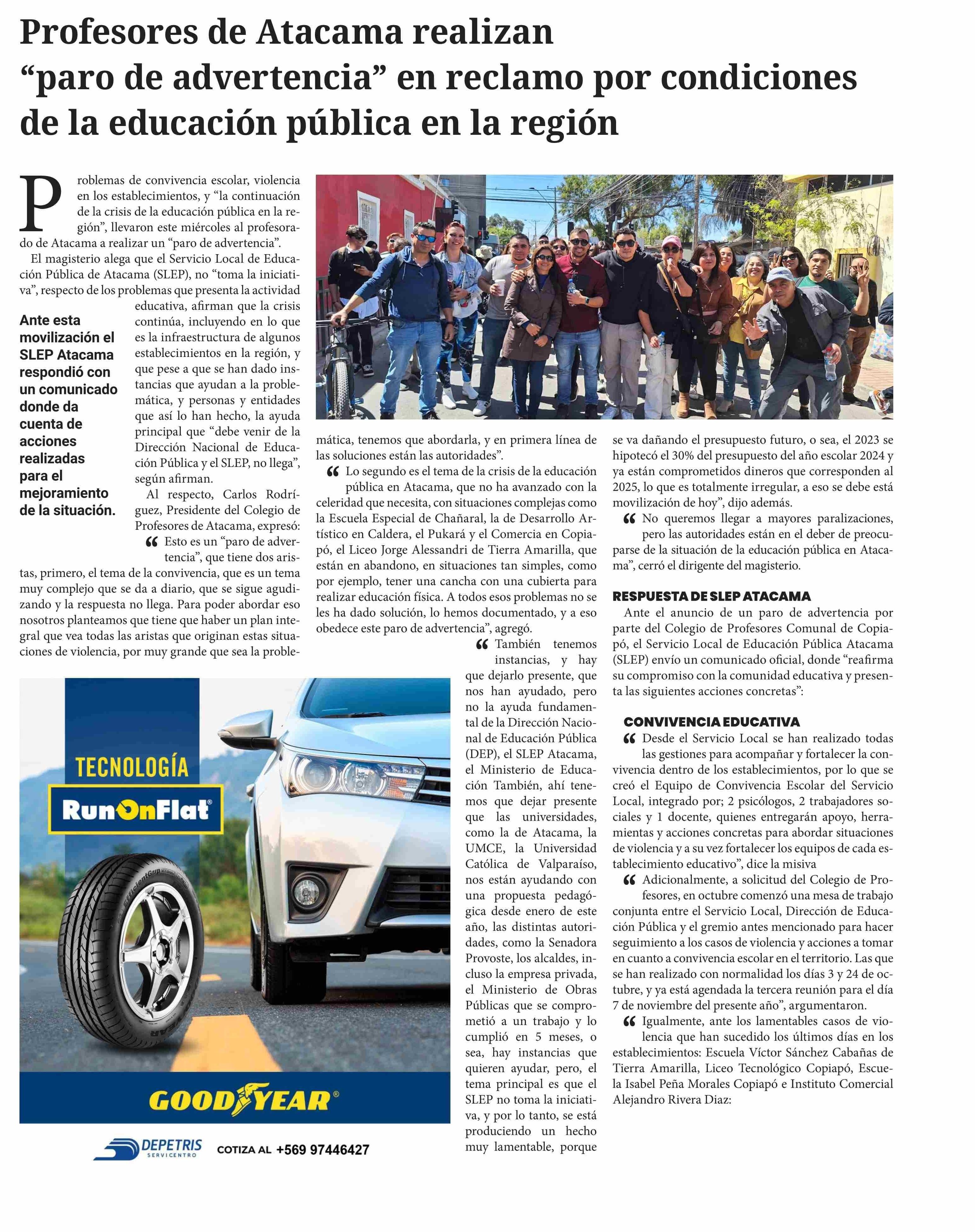 Profesores de Atacama realizan "paro de advertencia" en reclamo por condiciones 31-10-2024 Diario Chañarcillo |