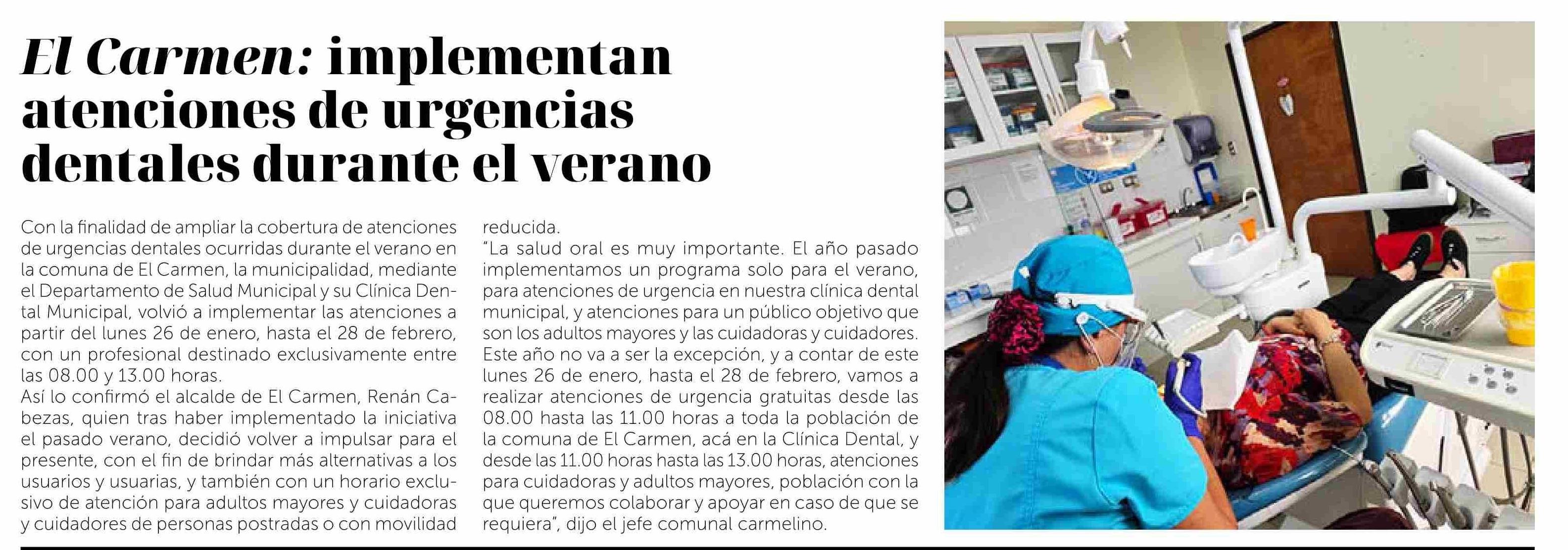 Título: El Carmen: implementan atenciones de urgencias dentales durante el verano