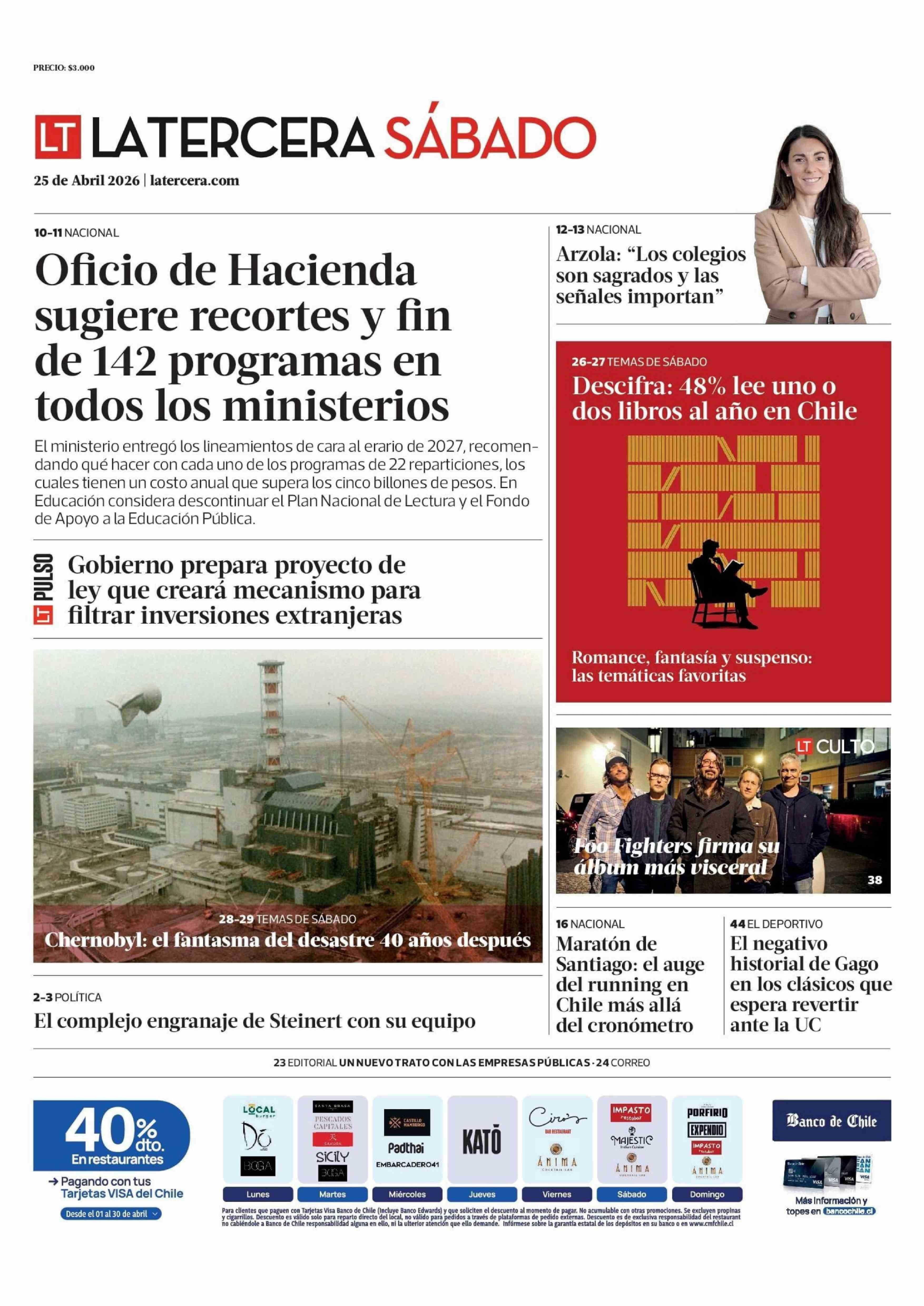 PORTADA LA TERCERA CHILE 25-04-2026 La Tercera |