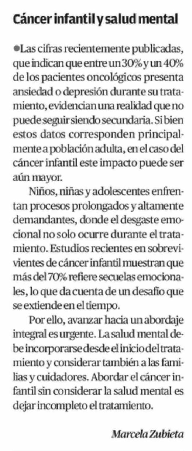 Cartas: Cancer infantil y salud mental