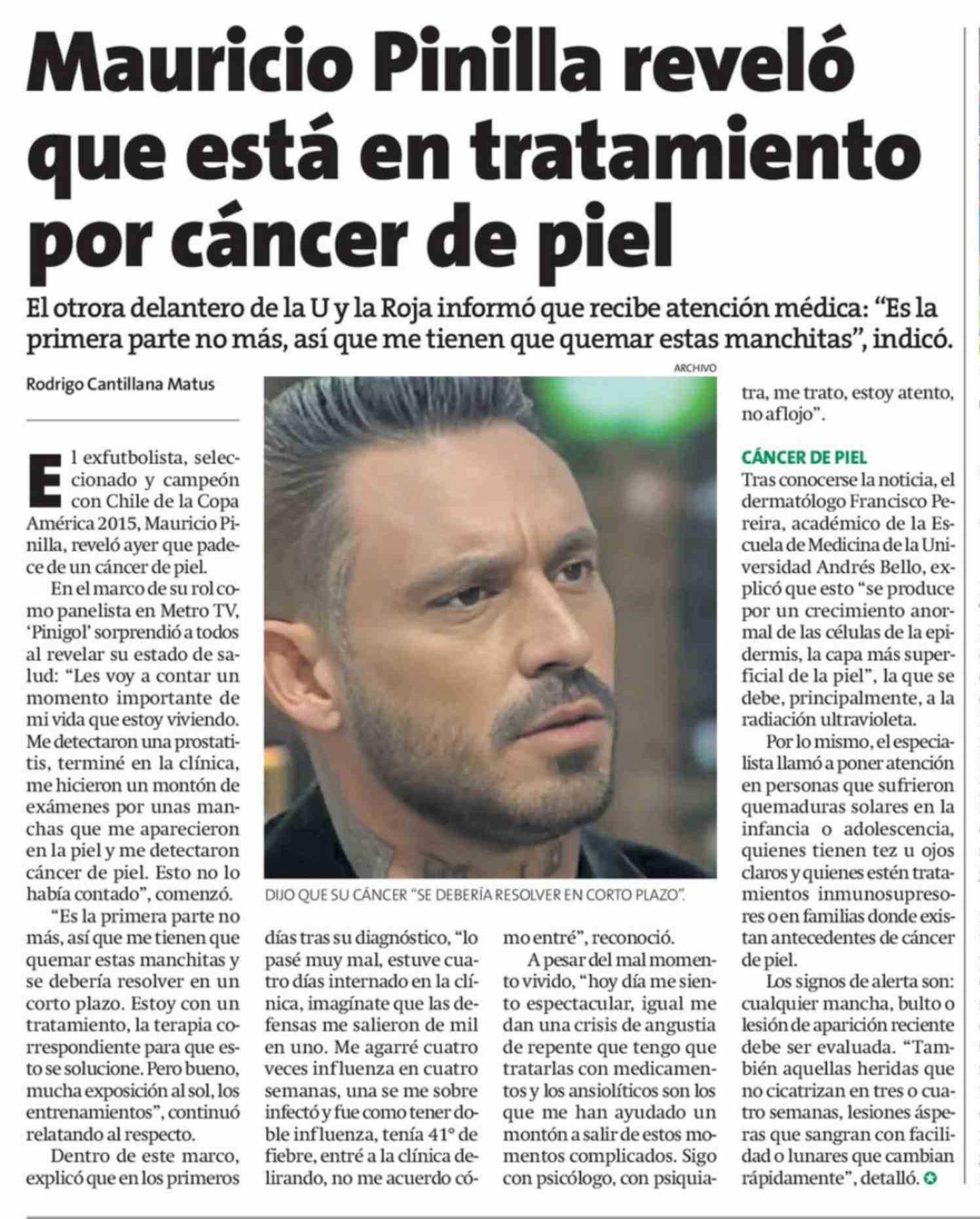 | Título: | Mauricio Pinilla reveló que está en tratamiento por cáncer de piel |