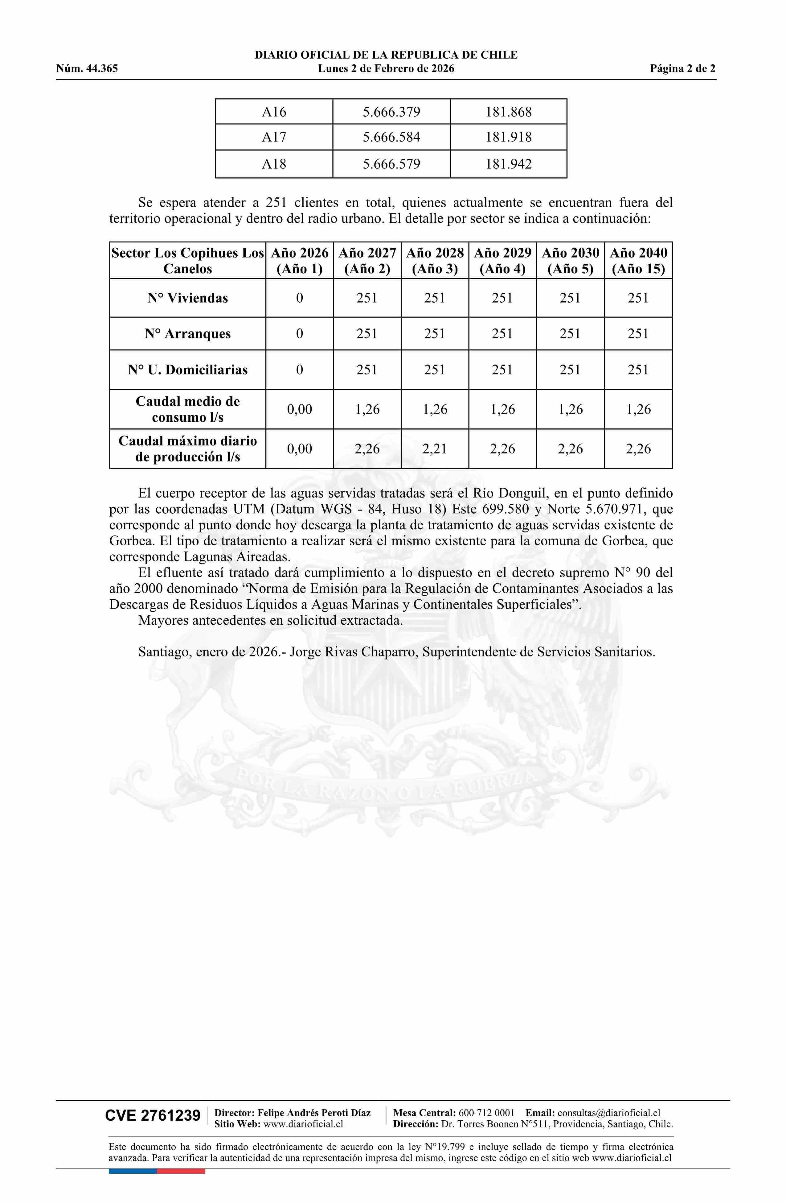Solicitud de ampliación de concesión de servicios sanitarios de producción y distribución de agua potable y recolección y disposición de aguas servidas 02-02-2026 Diario Oficial Edición Electrónica |