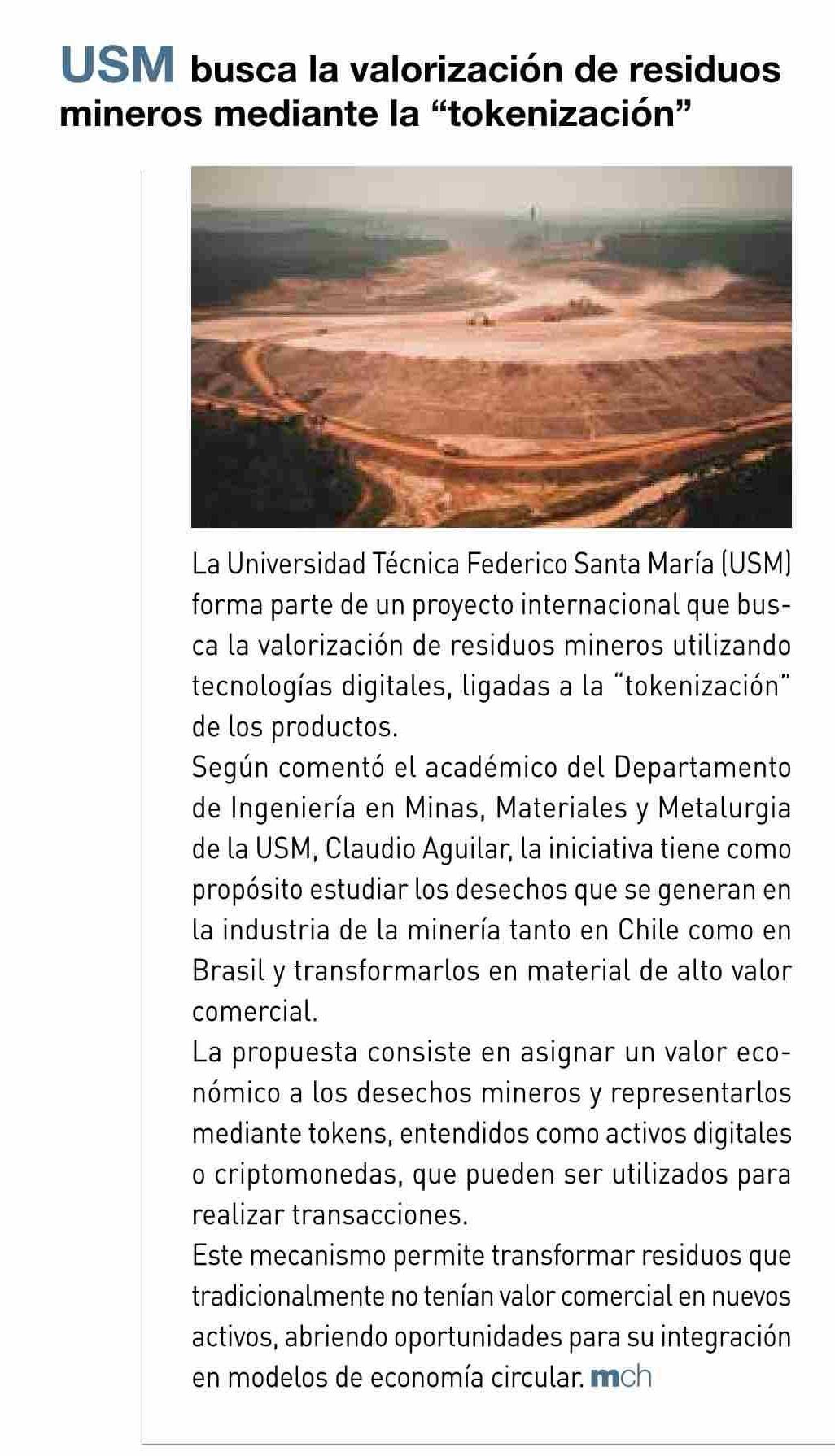 Título: USM busca la valorización de residuos mineros mediante la “tokenización”