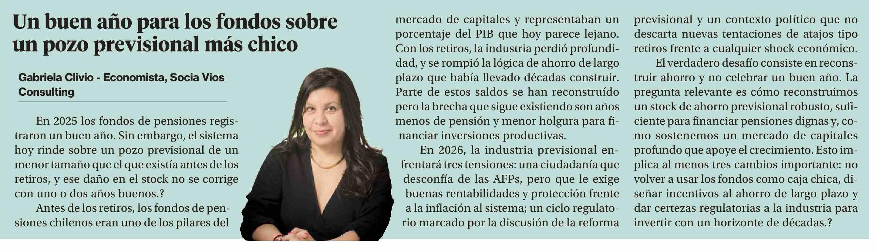 Título: Columnas de Opinión: Un buen año para los fondos sobre un pozo previsional más chico