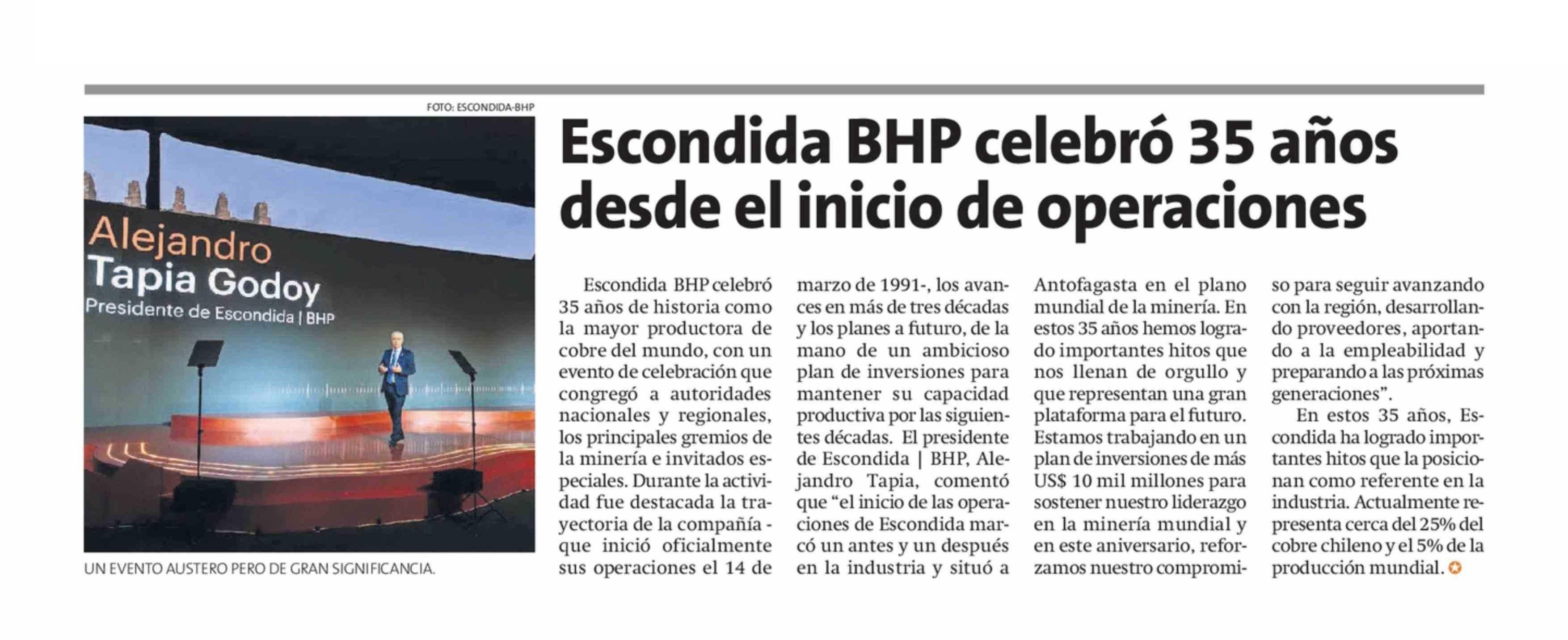 Título: Escondida BHP celebró 35 años desde el inicio de operaciones