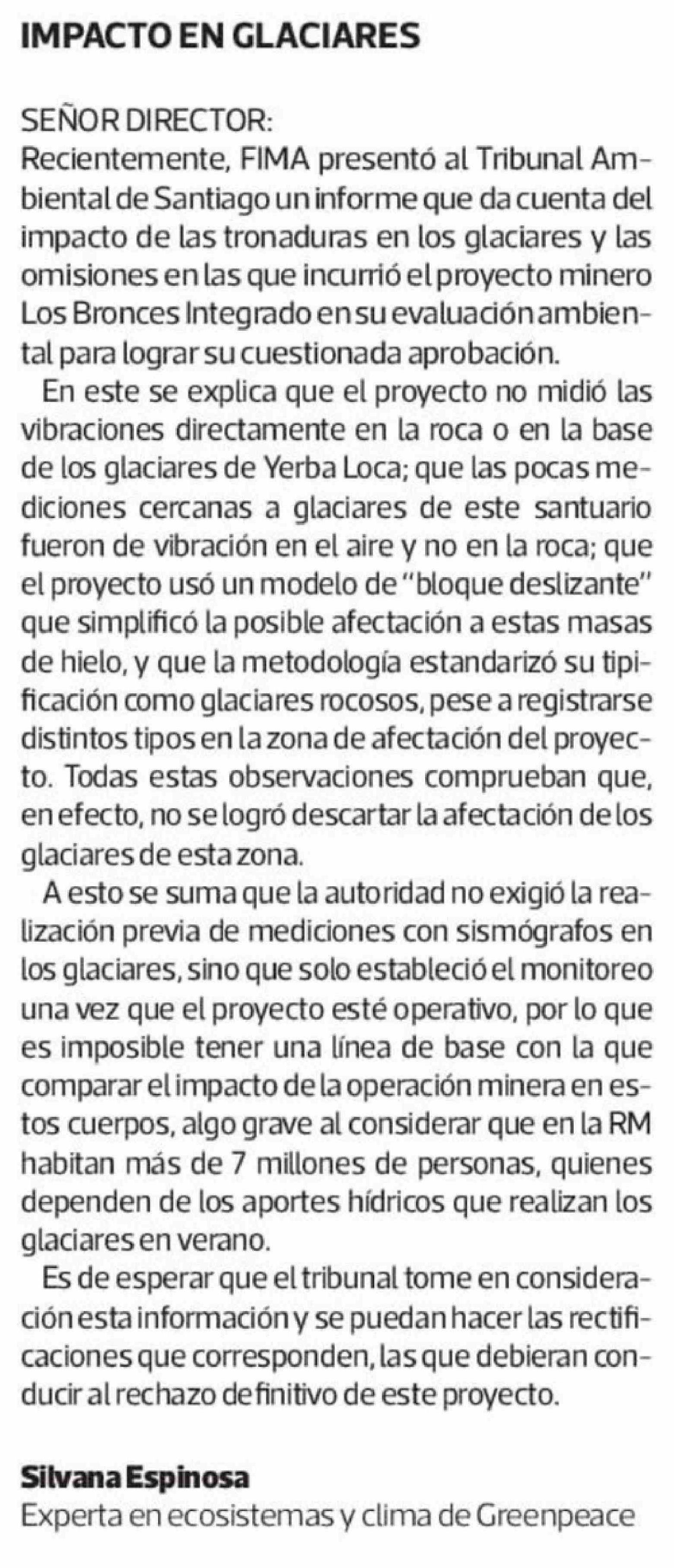 Cartas: IMPACTO EN GLACIARES