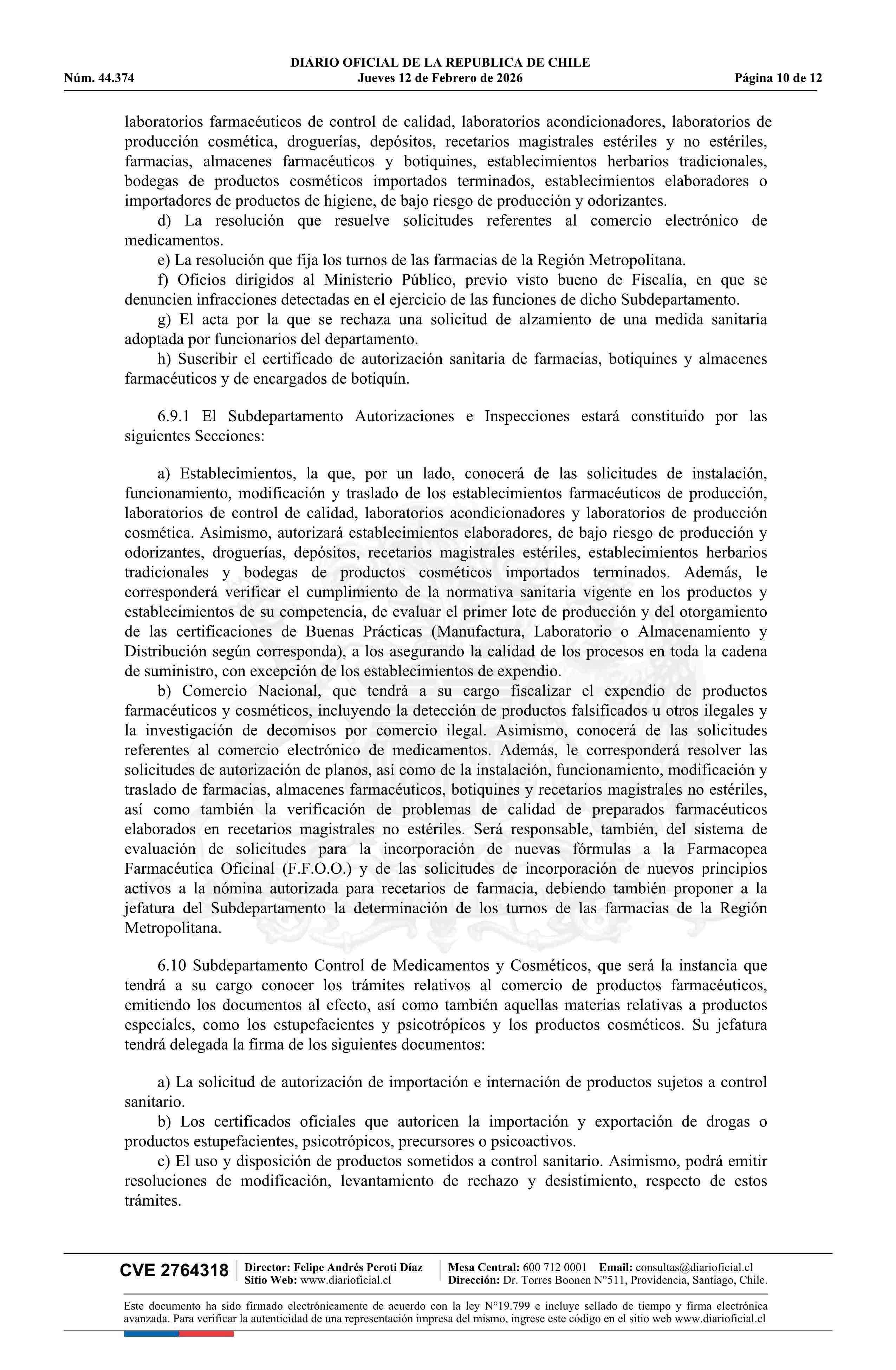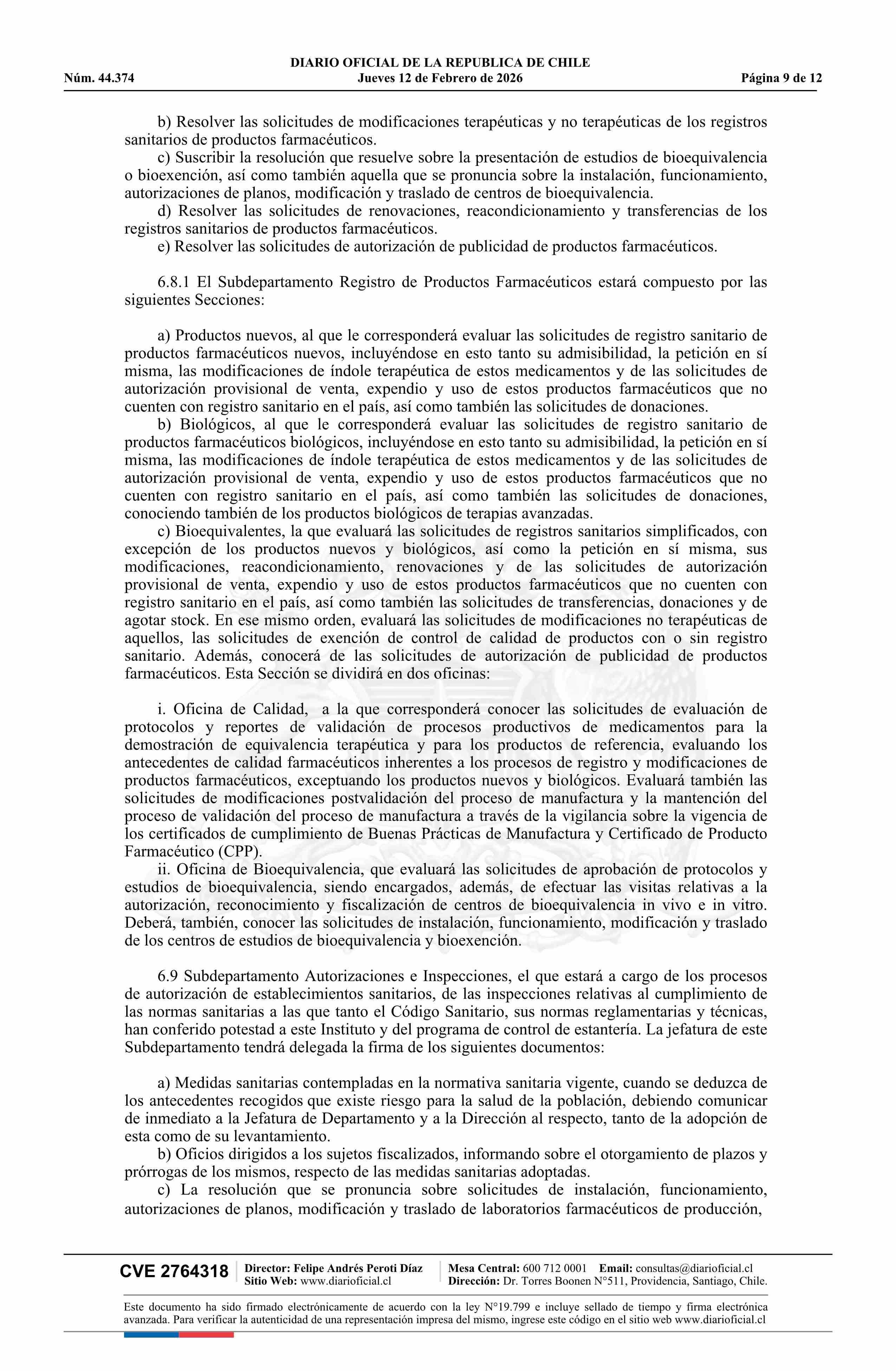 | Título: | Resolución exenta número E562, de 2026.- Modifica la resolución Nº 191 exenta, de 2021, que establece la estructura orgánica, funciones y delegación de firma y facultades de las distintas dependencias del Instituto de Salud Pública de Chile |