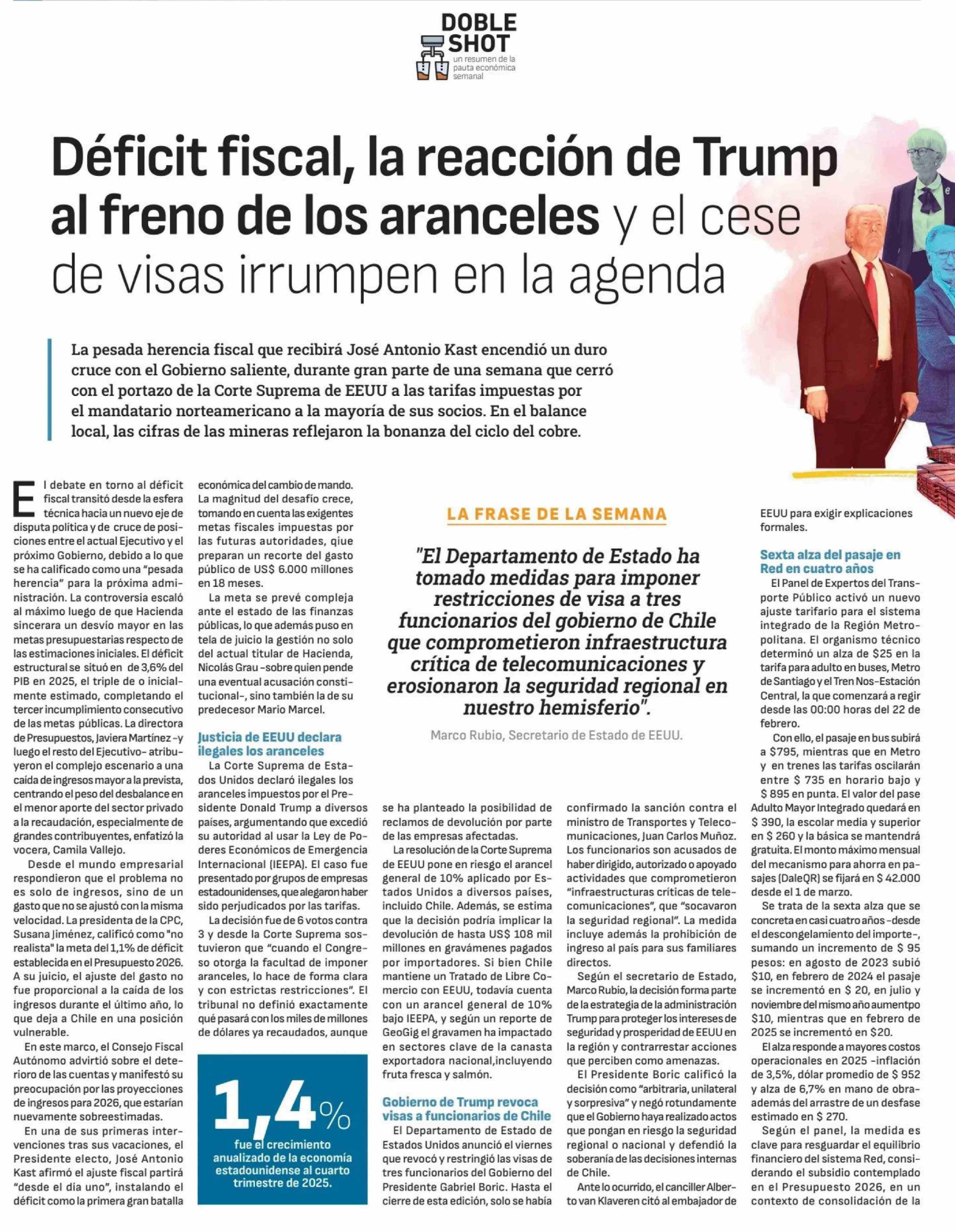 Déficit fiscal, la reacción de Trump al freno de los aranceles y el cese de visas irrumpen en la agenda 21-02-2026 Diario Financiero |