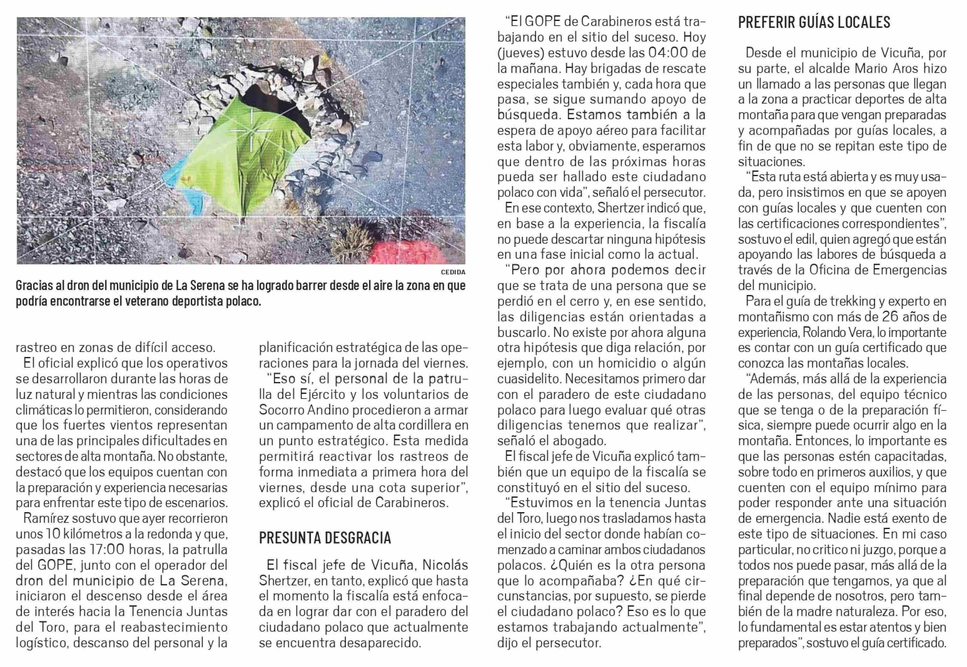 Guía que acompañaba a polaco extraviado visitaba la zona desde hace 9 años