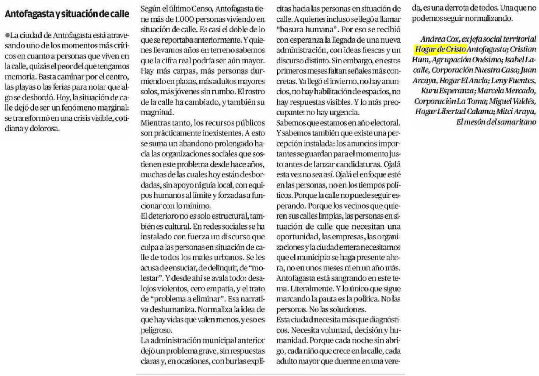 Antofagasta y situación de calle
