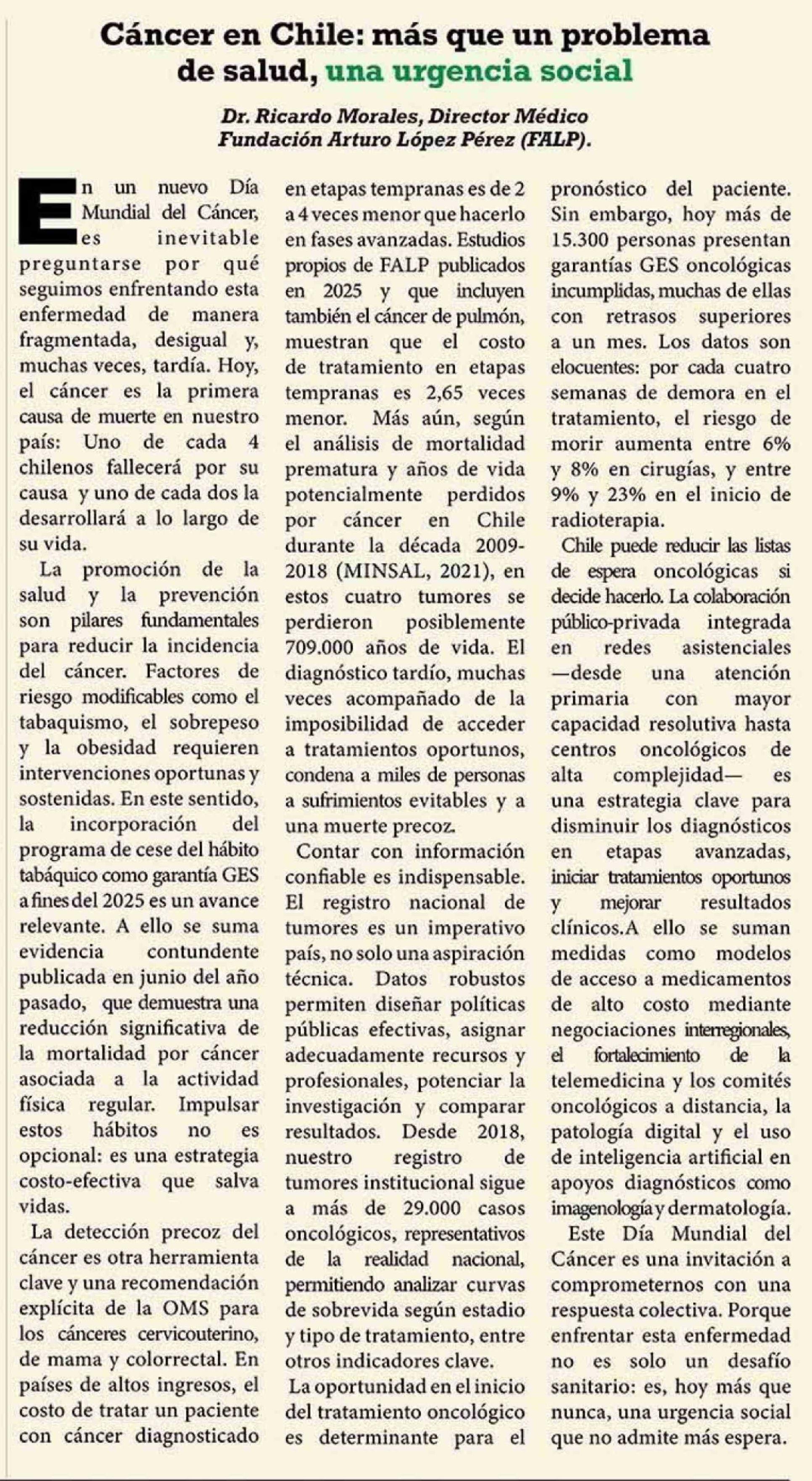 Título: Columnas de Opinión: Cáncer en Chile: más que un problema de salud, una urgencia social