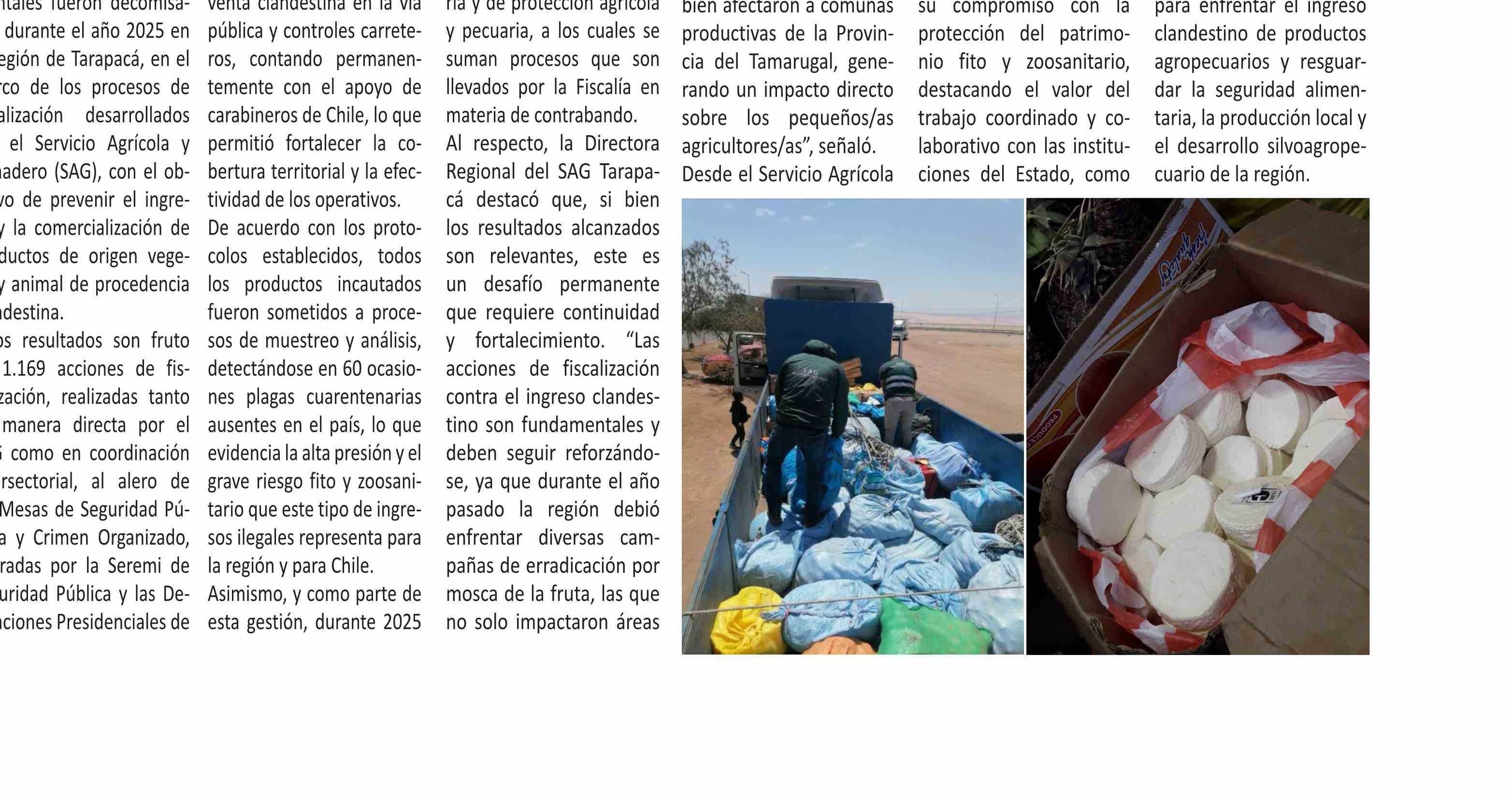 | Título: | SAG Tarapacá decomisó más de 128 toneladas de productos agropecuarios de ingreso clandestino durante 2025 |
