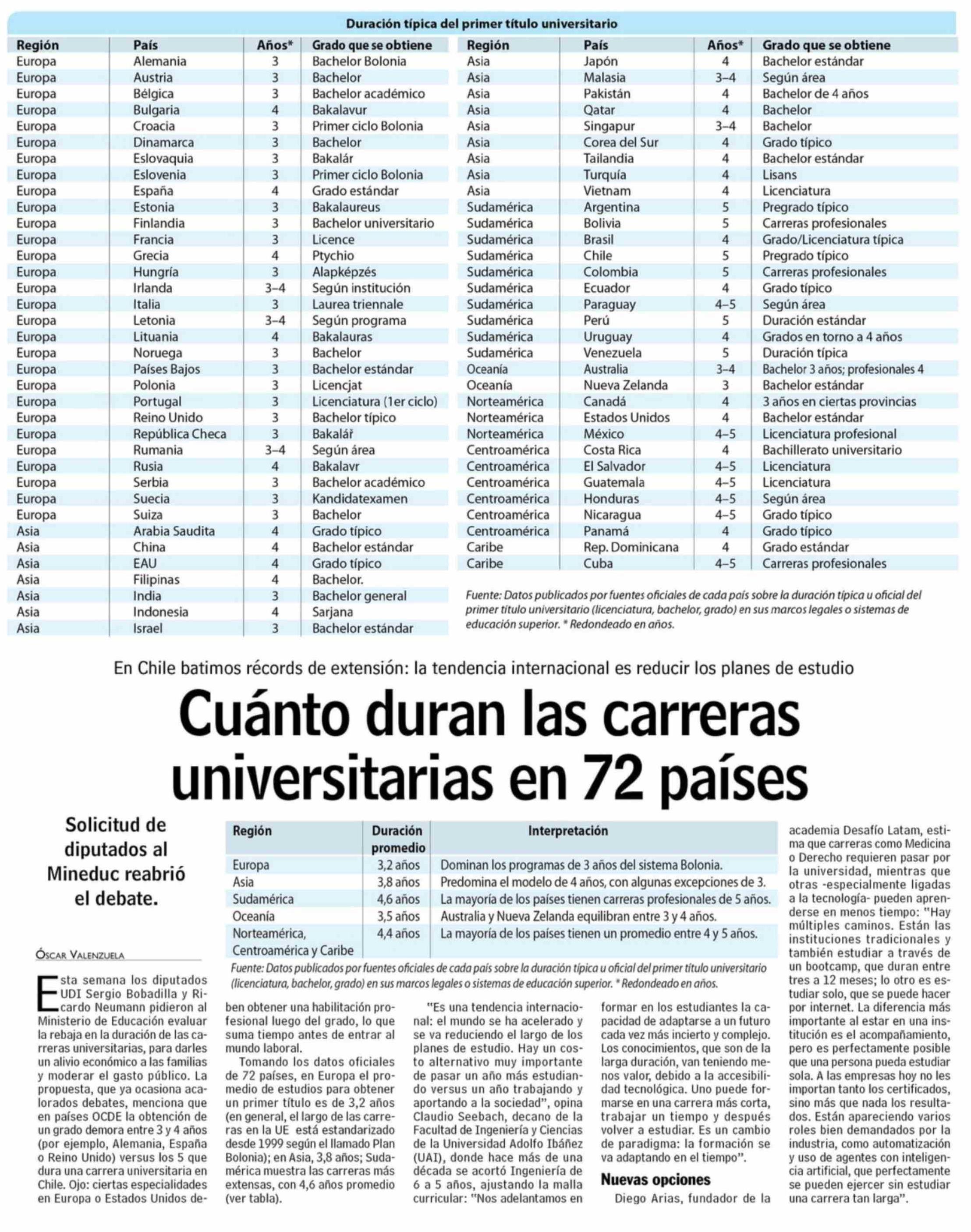 | Título: | Cuánto duran las carreras universitarias en 72 países |