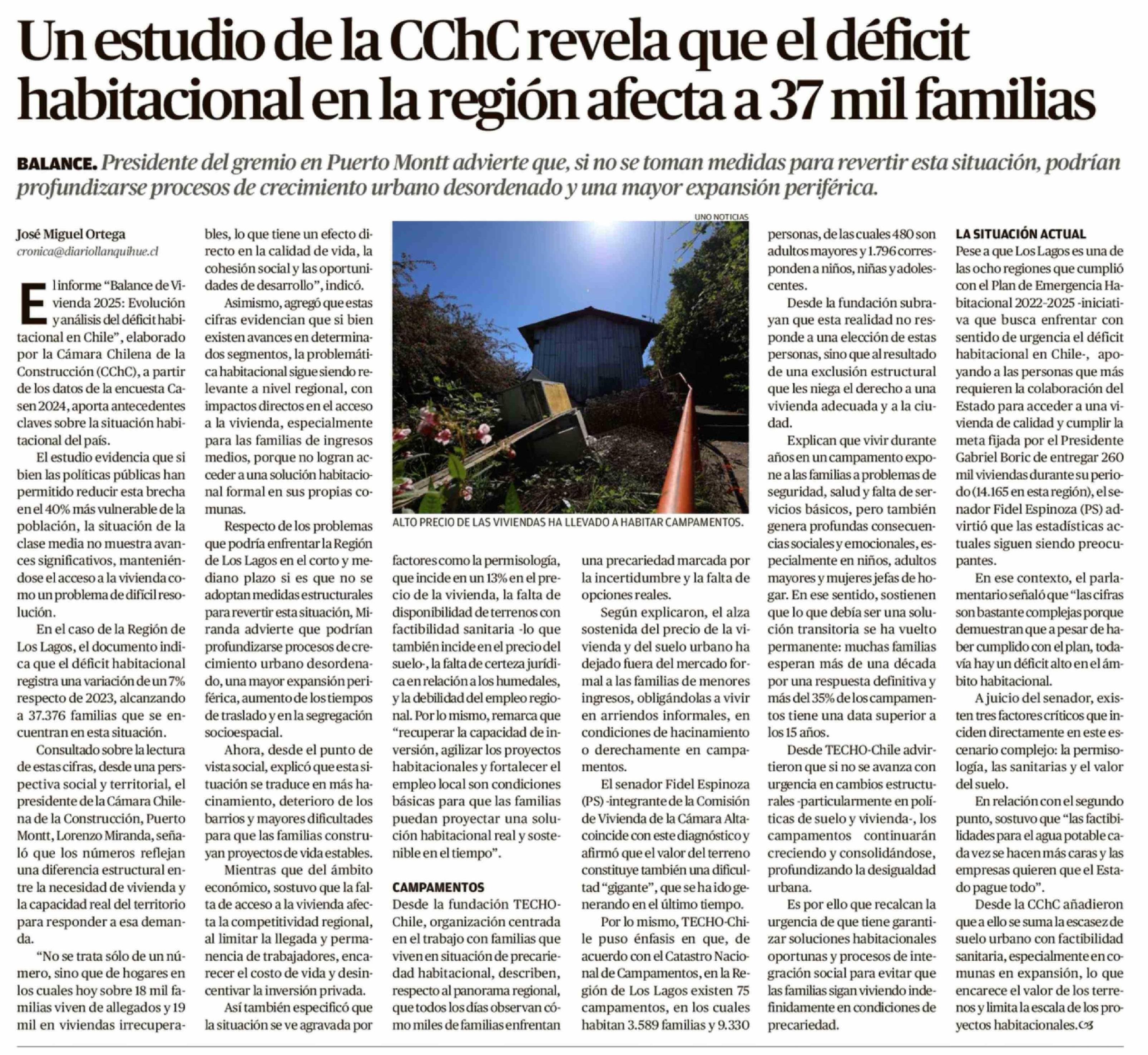 Un estudio de la CChC revela que el déficit habitacional en la región afecta a 37 mil familias 09-02-2026 El Austral de Osorno |