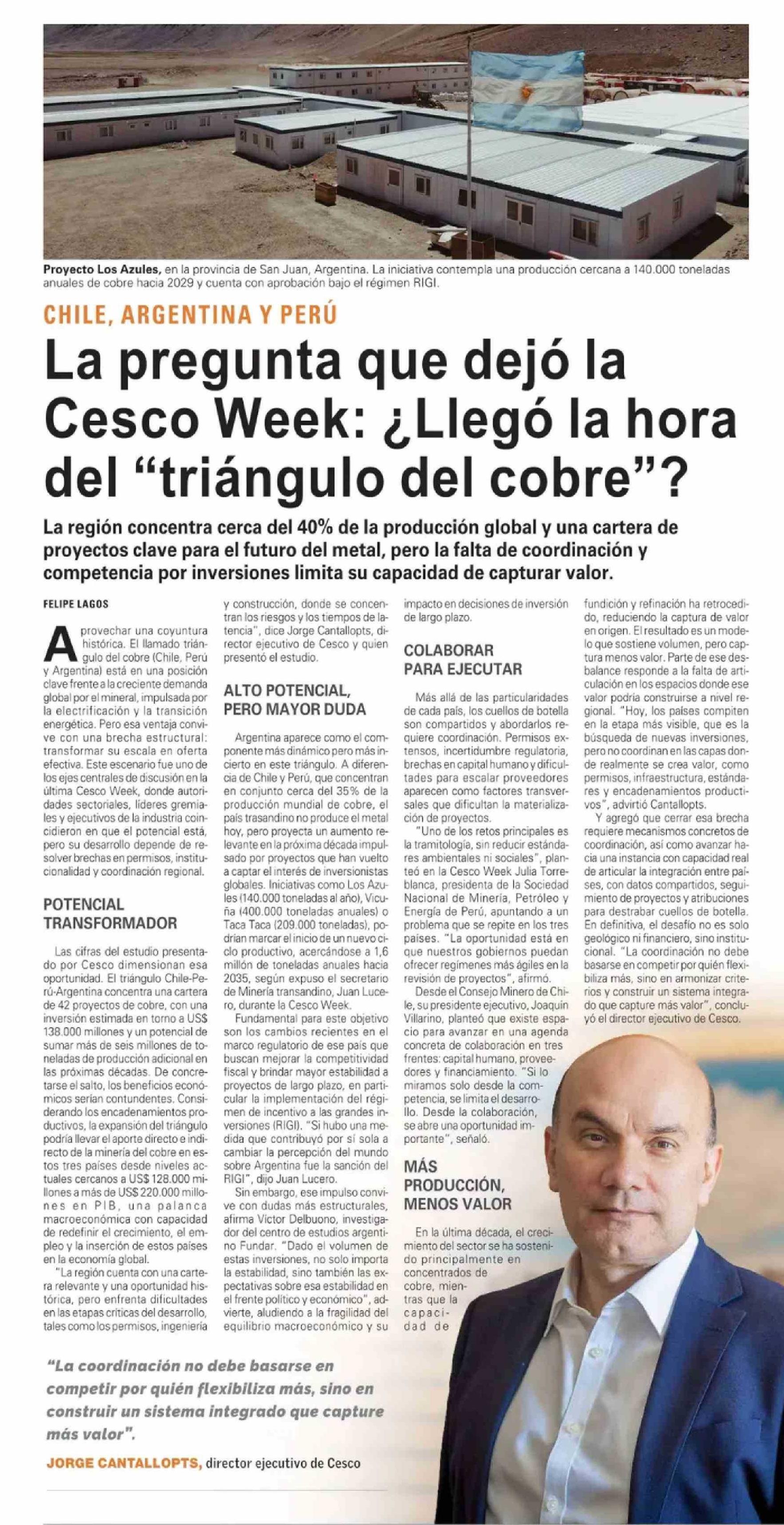 | Título: | La pregunta que dejó la Cesco Week: ¿Llegó la hora del “triángulo del cobre”? |