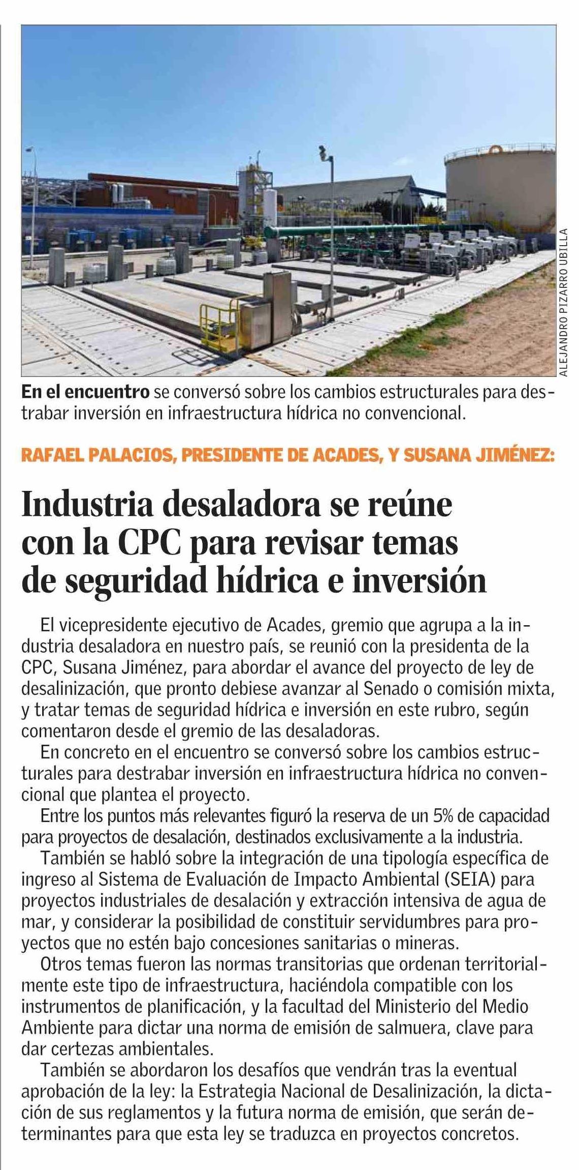 Título: Industria desaladora se reúne con la CPC para revisar temas de seguridad hídrica e inversión