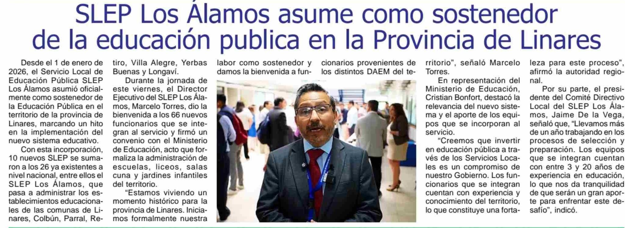SLEP Los Alamos asume como sostenedor de la educación publica en la Provincia de Linares 08-01-2026 Maule Hoy |