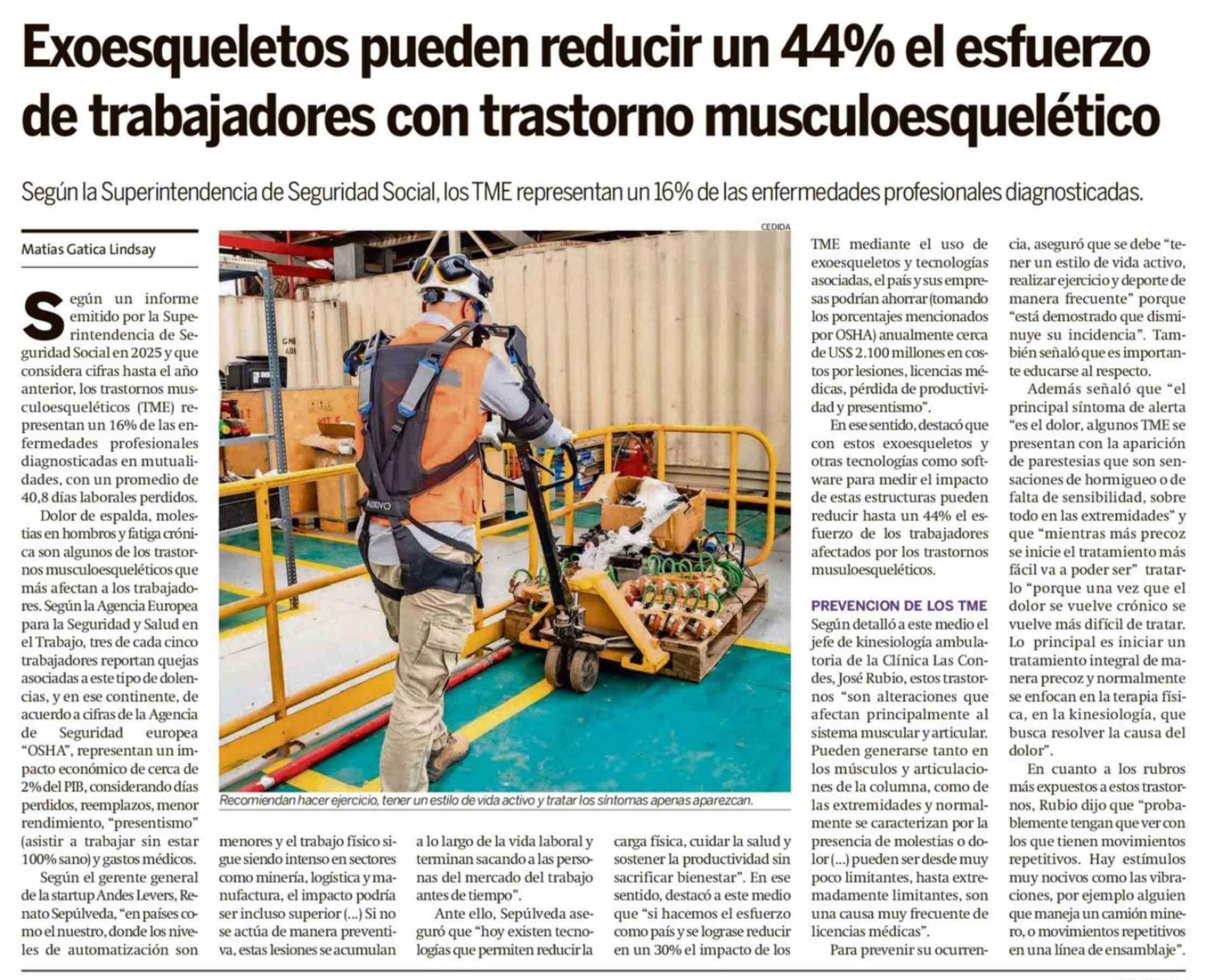 Título: Exoesqueletos pueden reducir un 44% el esfuerzo de trabajadores con trastorno musculoesquelético